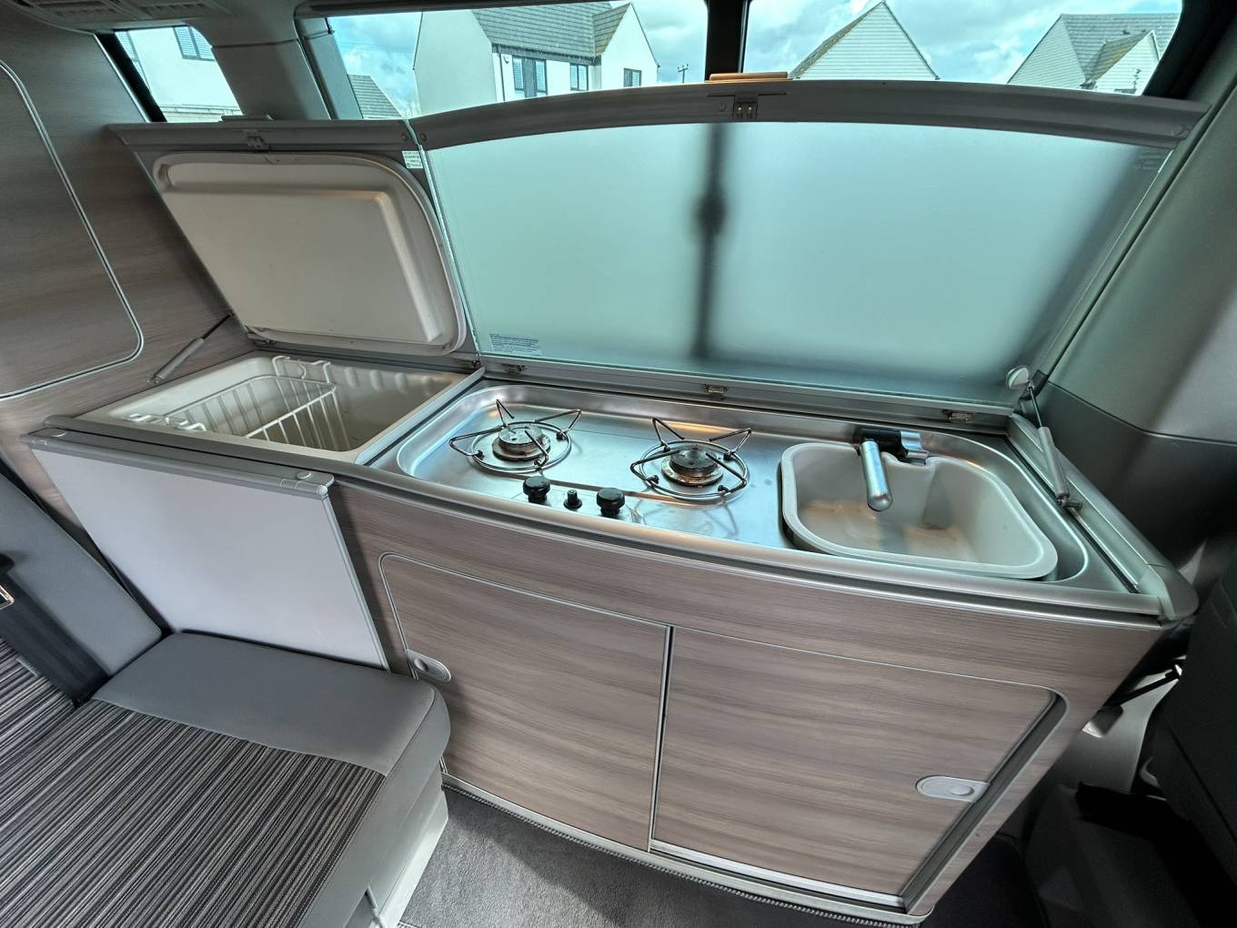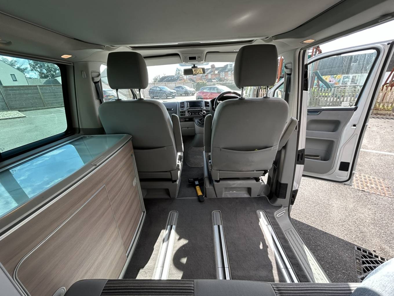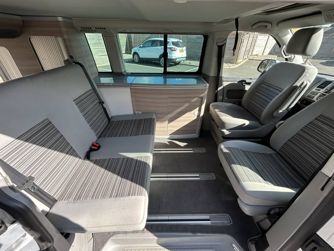 The compact yet well-equipped kitchen features two gas burners and a fridge, complemented by ample storage throughout. While showing some minor age-related marks and some minor damaged interior plastic consistent with its year, this California has been lovingly maintained and comes with the reassurance of recent service work and a fresh MOT with no advisories.