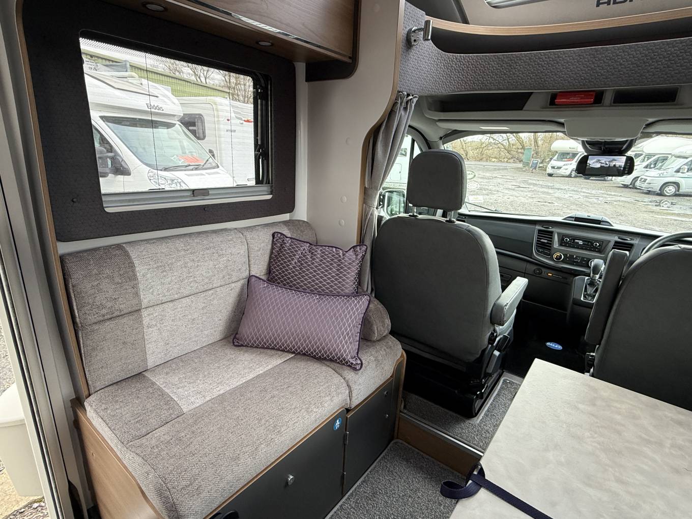 Offering four travelling seats, the front lounge area has a parallel bench seats,swivel cab seats and telescopic swivel table.
