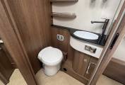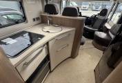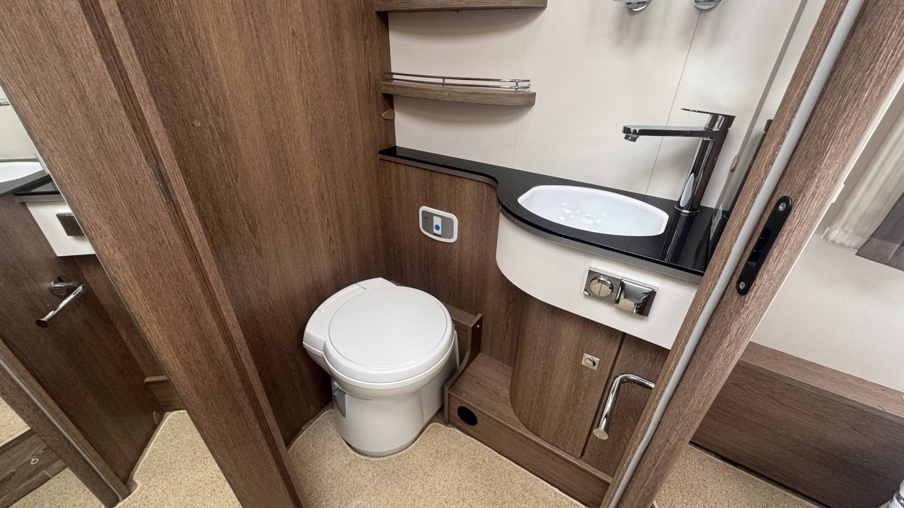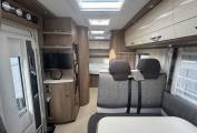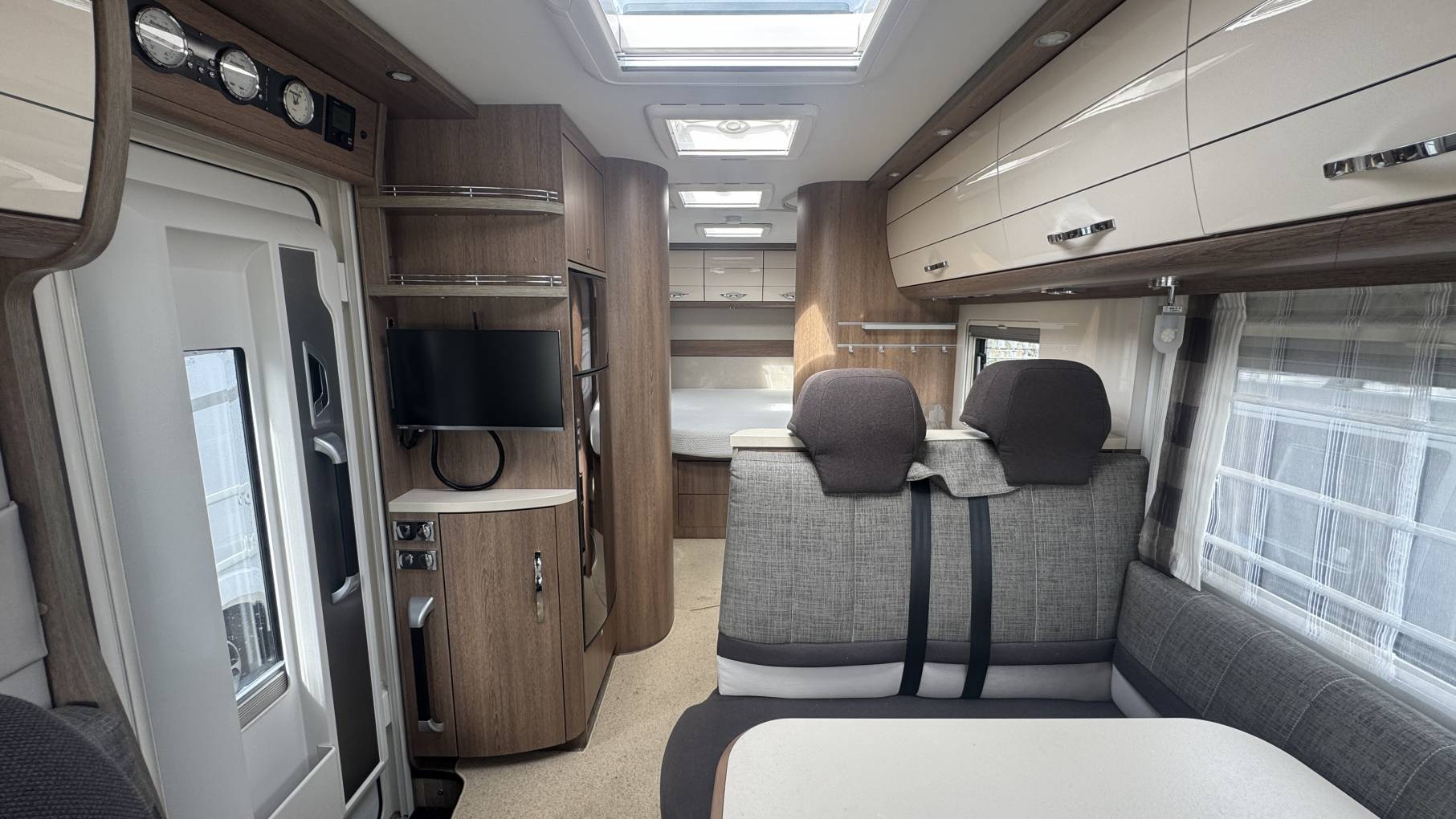 The inviting lounge area benefits from swivel captain seats, creating a generous living and dining space. The premium kitchen comes equipped with a large fridge/freezer, hob, oven, and extensive storage, ensuring home-style convenience on the road. Completing the interior is a well-designed full washroom with a separate shower, along with Truma heating and hot water to keep you comfortable all year round.