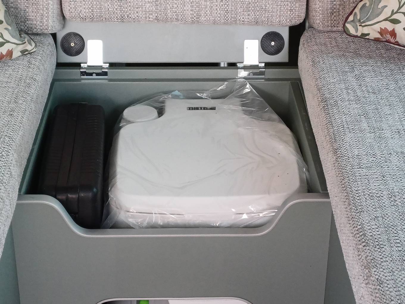 Travel and sleep 2 in comfort, onboard toilet facility for added convenience, full set of thermal privacy blinds included, LED lighting, leisure battery to power your accessories, phones and tablets, 12v cooler, 240v hook up site power, roll out side awning and good sized 2m weatherproof safari room for extra outdoor storage and wet weather gear store.
