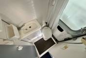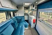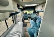 At the rear of the Campervan, you will find the functional washroom that includes vanity handwash basin, cassette toilet and separate shower controls. Adjacent to this is the well equipped L shaped kitchen which boasts incredible storage options and includes a 4 burner gas hob, oven, sink with drainer and a 3 way fridge. Moving forward, you will find the comfortable L shaped sofa featuring 2 additional travelling seat belts. This area is flooded with natural light and gives an open plan feel to the Campervan. The drivers and passengers seats swivel allowing four people to sit in this area comfortably. As the night draws in this quickly and conveniently converts into a double bed.