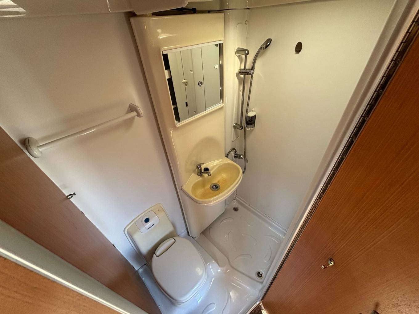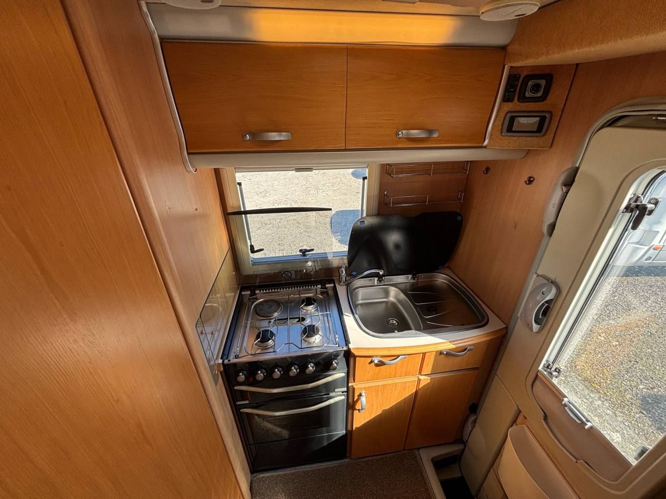 The Nuevo has a rear kitchen, with sink unit (hot and cold water), 3-way fridge with freezer compartment, 3 gas hobs and one electric plate, a gas oven and separate gas grill. Adjacent to the kitchen is the washroom with chemical toilet, wash hand basin and cleverly designed shower that makes into a separate cubicle.