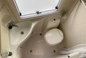 cabinet with bottle holders. Adjacent is the rear washroom with Thetford swivel