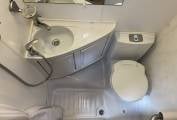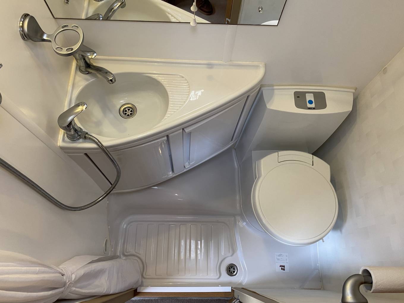 well-appointed washroom with a swivel Thetford cassette toilet, vanity