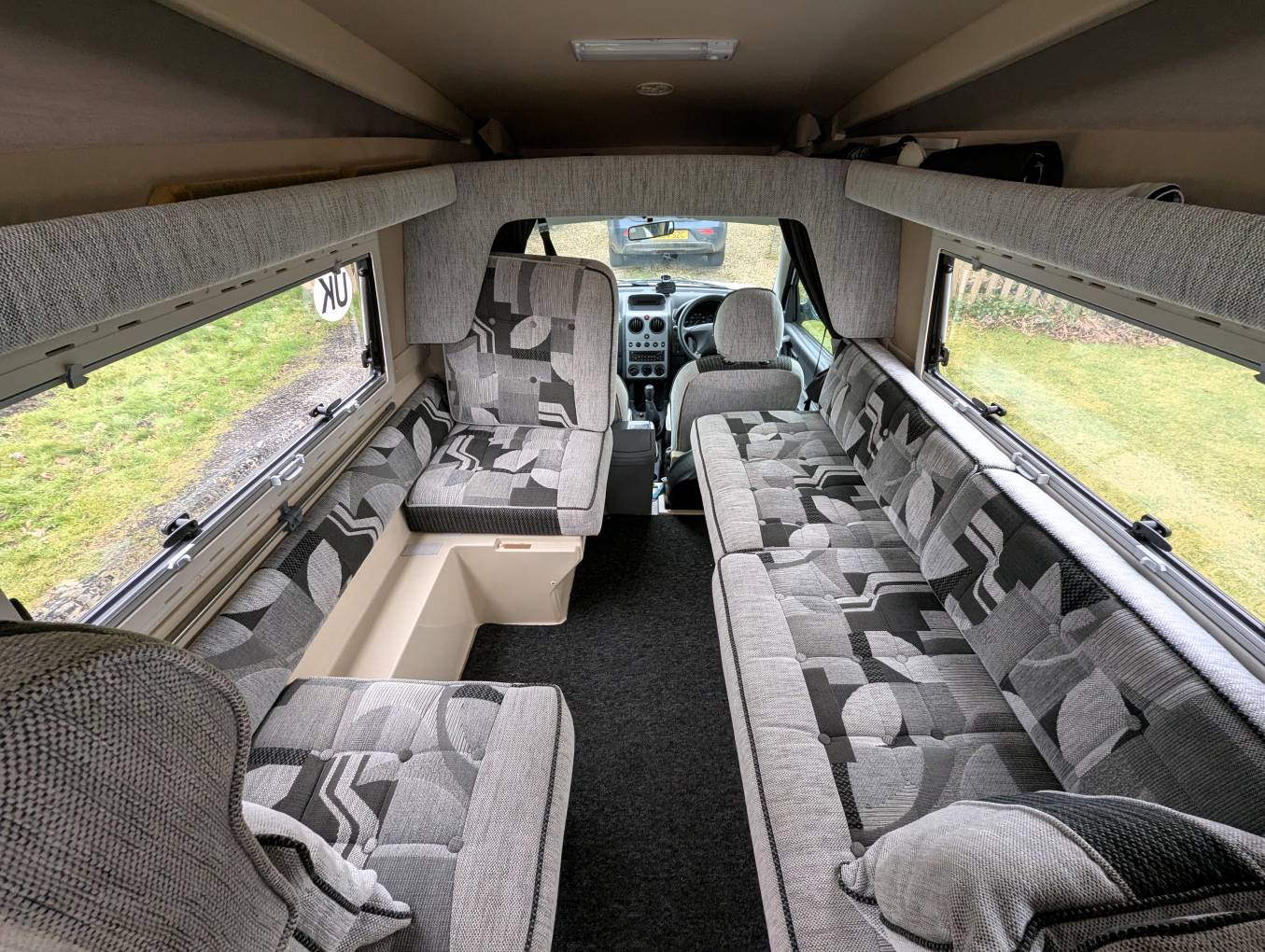 Beyond the kitchen section you find the opposing long sofas, which allow seating for up to six, on the unmarked and still pleasing on the eye upholstery, which is carried over into the cab section.