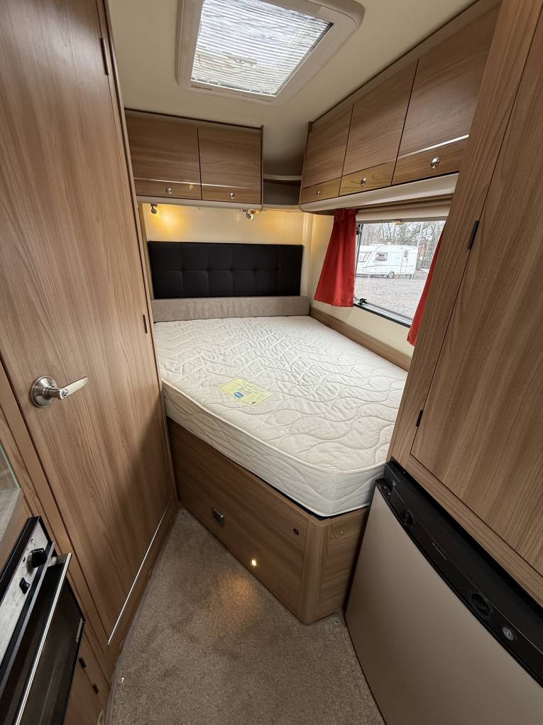 The layout is from the rear you have the fixed double bed with storage space of the full bed underneath then