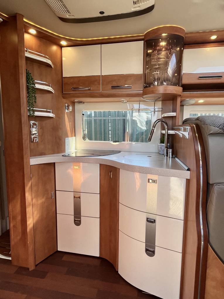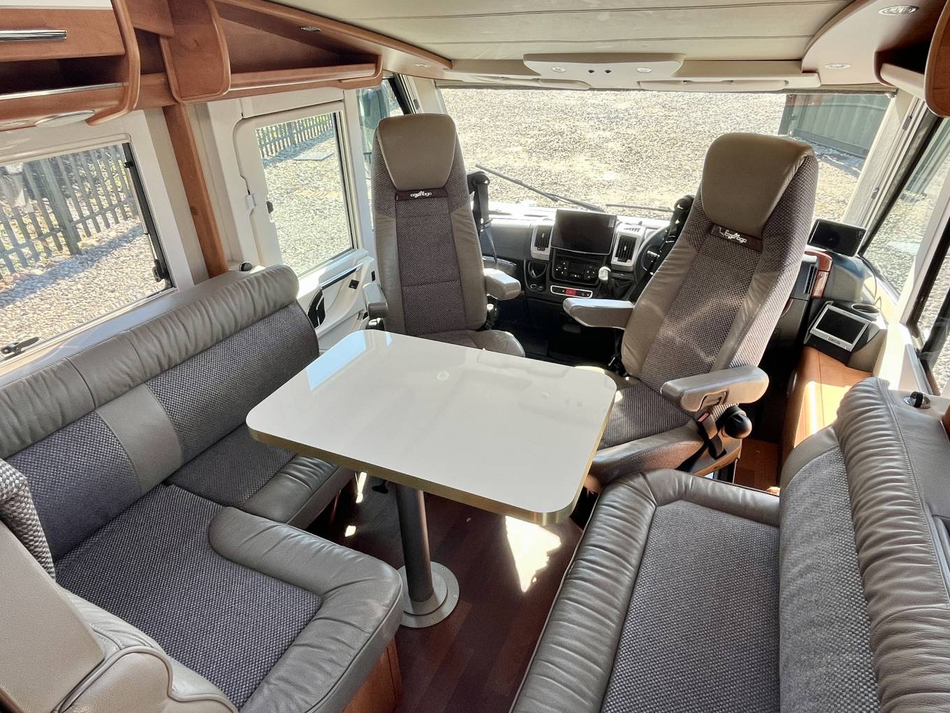 Motorhome Depot West Leicester are delighted to offer this very well equipped Carthago Chic C-line XL LE A-Class luxury tag axle motorhome, first registered in March 2016 this motorhome has just covered 20,592 miles from new, it is based on the 2999 cc Fiat chassis combined with the comfortmatic auto gearbox. The well equipped cab has two fully adjustable, swiveling captains seats, cruise control, air conditioning, Alpine media centre, 360 camera system and plenty of storage space. Above the cab you have a large pull down bed. The spacious lounge and socializing area has great storage in the overhead units and L shape seating with a straight lounge bench opposite complete with Tv connection behind, there is also an adjustable table and an additional two travelling seat belts. Behind the lounge is the kitchen area complete with sink, three burner hob and large fridge freezer, there is also great storage above and below the worktop area. Walking further into the van we have the separate shower area and opposite the washroom and toilet area, the washroom door can be used to close off the bedroom area to make a very private space at night with the advantage of shower and wash room as an ensuite. The bedroom itself is spacious with again great storage options above and below the twin single beds, with the use of an infill cushion the singles can be converted to a good sized double bed. Interior comfort is controlled by an ALDE heating system and a Truma habitation air conditioning unit.