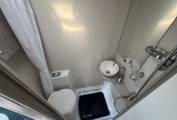The basic layout is a rear lounge, washroom and opposite the galley kitchen and 2 captains’ seats upfront.