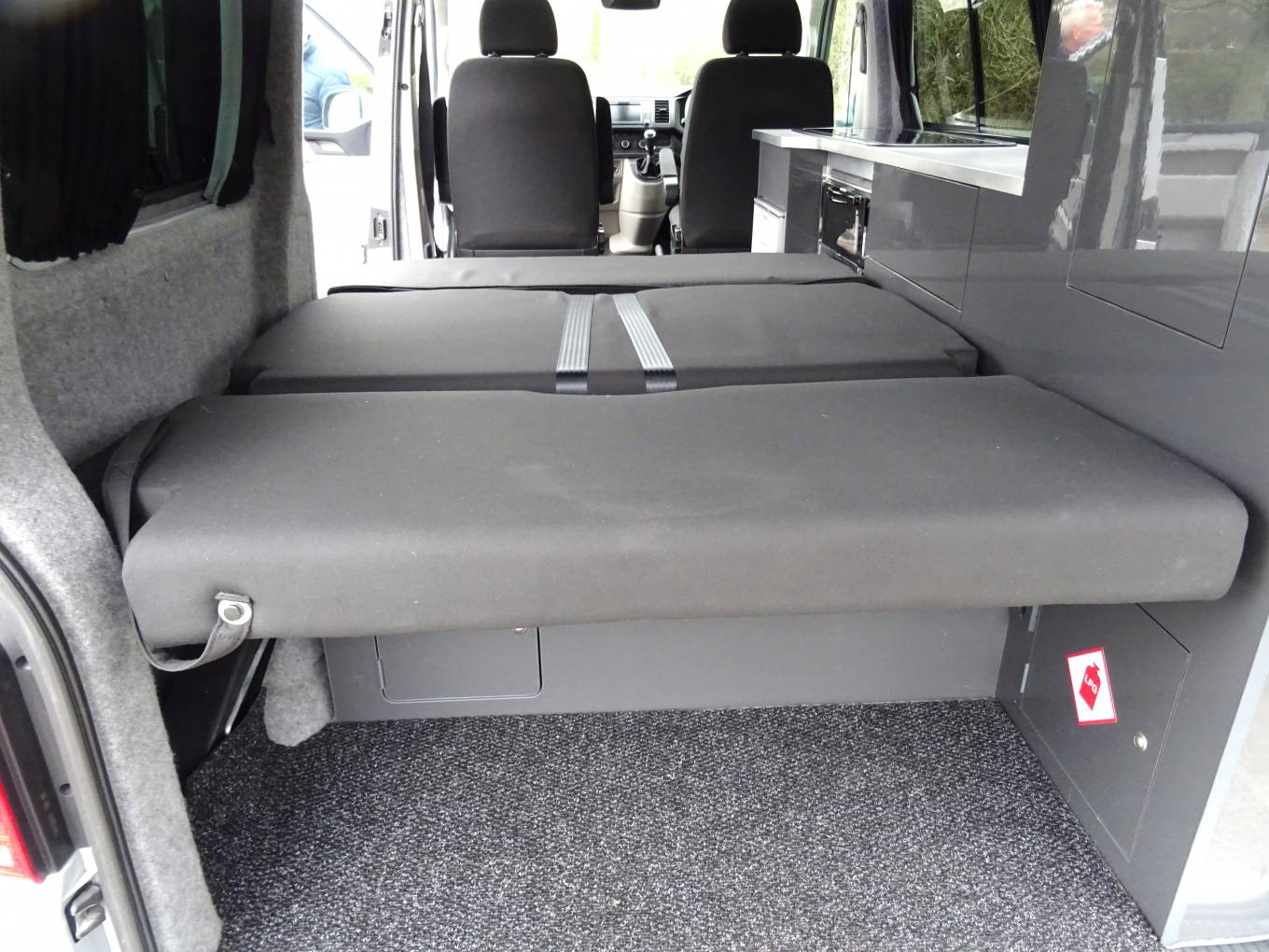 It's a 4 berth,4 belted campervan with a RIB R&R bed and a second double bed above in the forward facing pop-top roof. The front passenger seat swivels to create a great area to relax in once you have reached your destination.