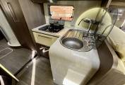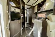 The lounge is comfortable and spacious, featuring plenty of room for six people to sit around an adjustable table, perfect for meal times and socialising. The Burstner is warmed by the famous Alde heating system, no matter what the weather. If in warmer climes, the Truma air conditioning allows to keep the motorhome cool.