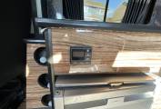 The kitchen comprises of a sink with cold water, two ring gas hob, fridge and 20ltr on board water carrier. There is storage at floor level, a removable table and gas bottle locker.