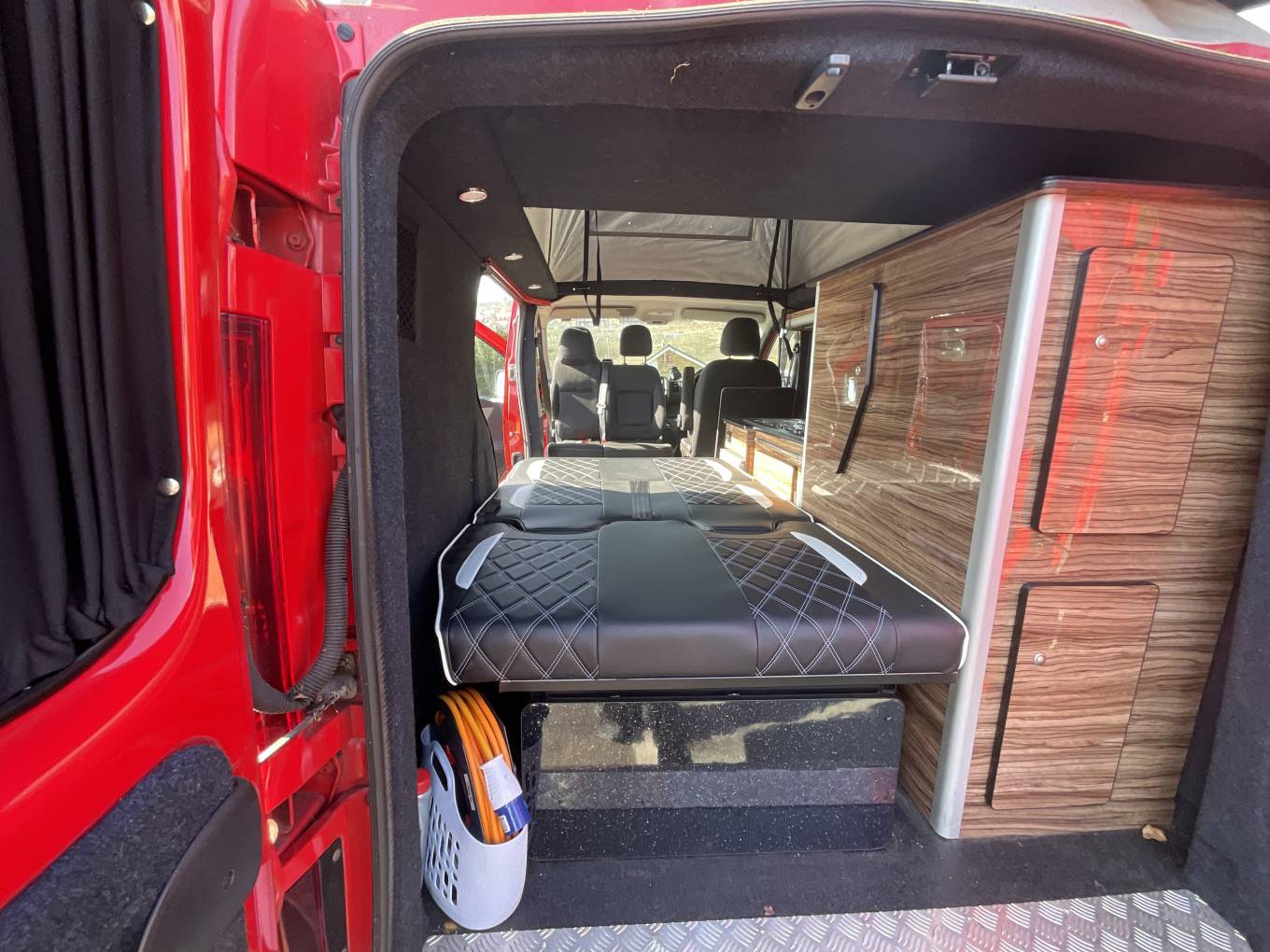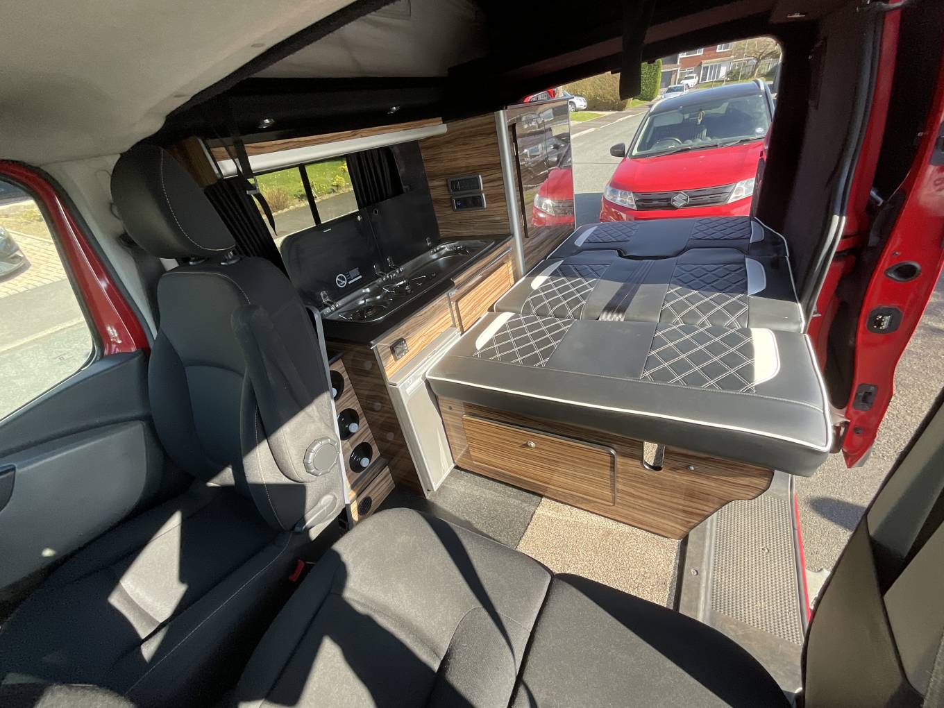 The vehicle comes with Electric Windows and Mirrors, Driver Air Bag, Cab Air Con, Reverse Sensors, Tinted Side and Rear Windows with Black-Out Curtains, LED strip and spot lights, Leisure Battery, Autotherm diesel heater, 240 Sockets and USB points and External 240v Hook-Up Point. Please note that there is no gas bottle with the Camper.