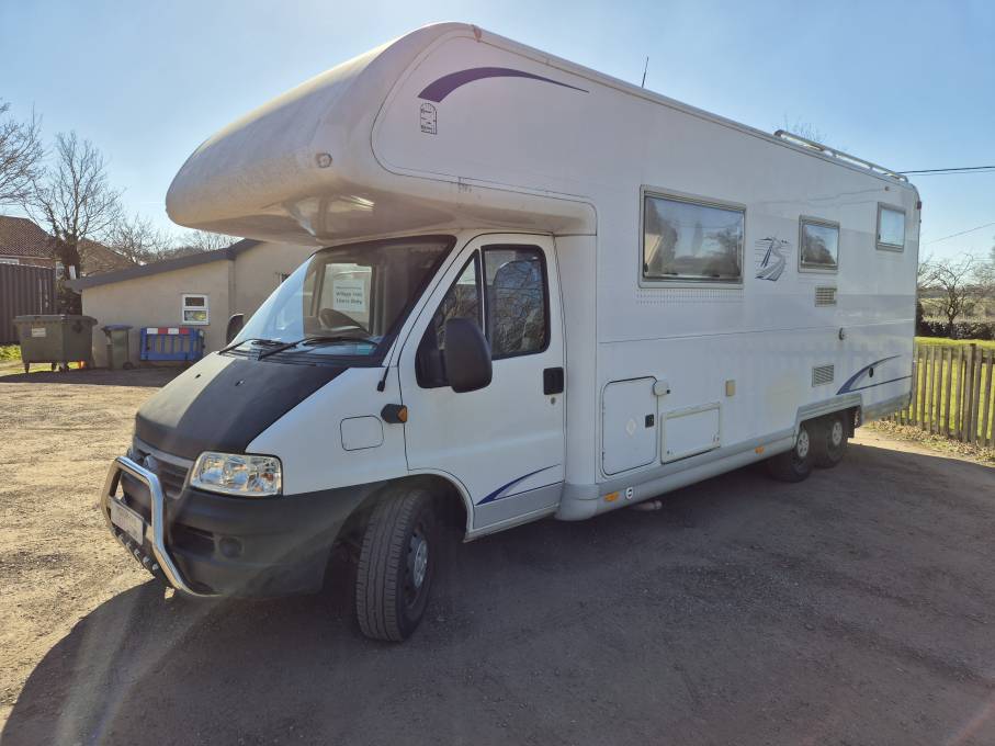 Motorhome Depot is delighted to present this 2005 Burstner Argos 748 , RHD, 5 speed manual gearbox, based on Fiat 2800cc diesel engine. The GVW is 5000kg which requires a C1 driving licence This spacious 6 berth family tag axle motorhome provides more than ample space for the occupants and comfortably sleeps 6 with 4 travelling seatbelts. The main feature of this motorhome is the rear transverse bed which sits above the large garage providing the ideal storage for bikes and outdoor equipment. The washroom is located at the foot of the bed and provides a separate shower cubicle, Thetford cassette toilet and hand wash basin with vanity unit. The kitchen is well equipped with 3-ring gas hob, 3-way fridge with small freezer compartment, combined oven and grill and sink with hot and cold water. To the front you will find the dinette which is made up of an L-shape bench with two 3-point seatbelts and a large side facing sofa. This area is perfect for dining and easily converts to a Queen size bed. The final double bed is the spacious over cab bed.