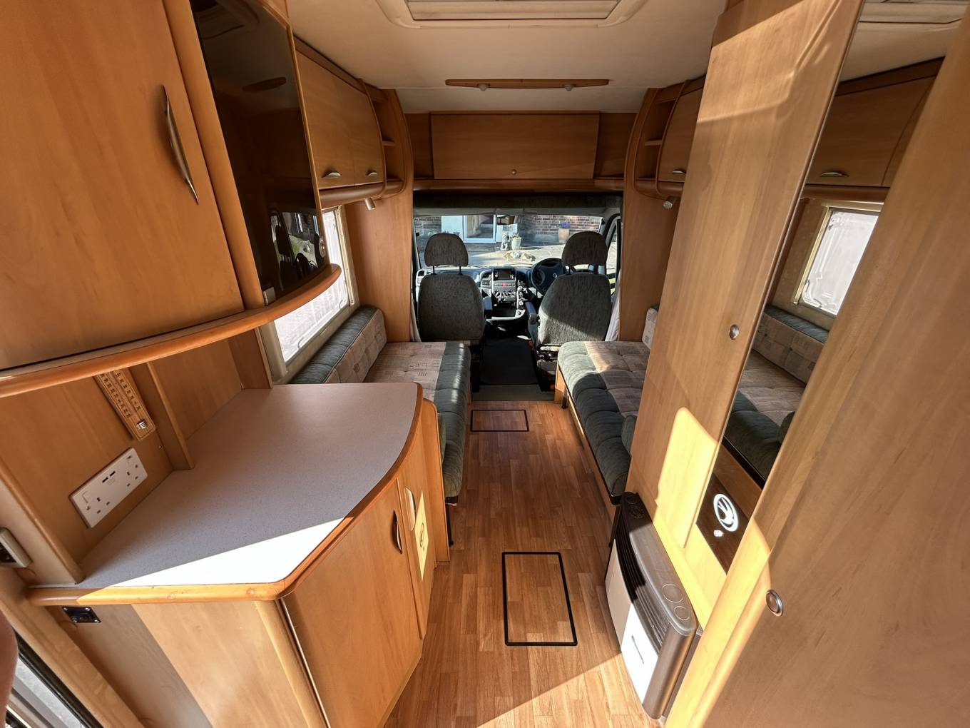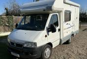 Built on the dependable Fiat Ducato chassis and road-ready at 2900kg, this motorhome can be driven on a standard UK license. The practical end kitchen layout provides excellent cooking facilities while maximising living space. Two swivel cab seats create a versatile lounge area that easily converts into a comfortable double bed when needed.