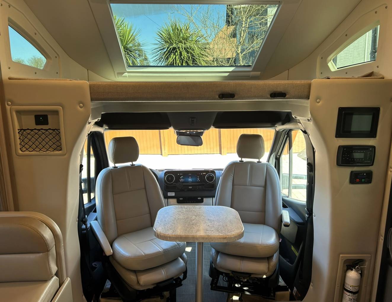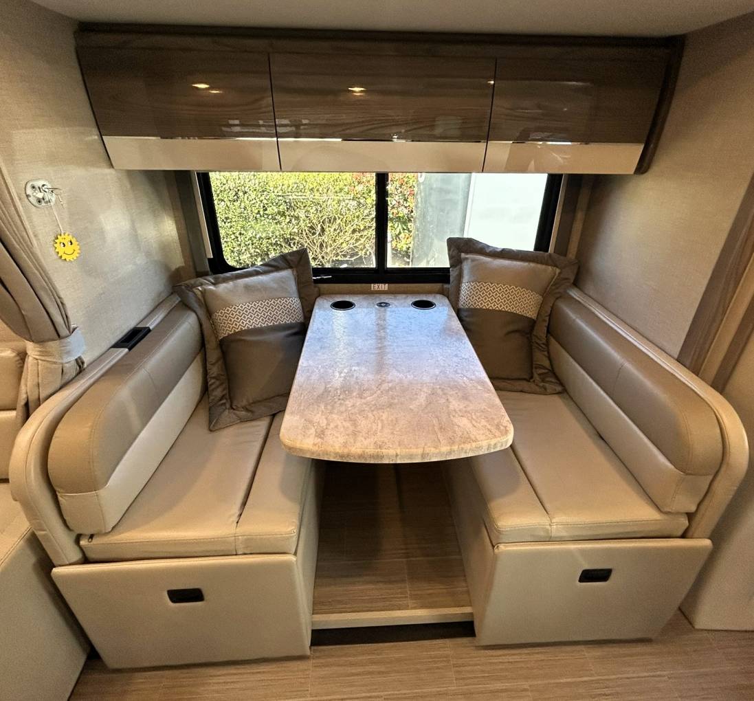 Dinette with footrests to relax on, but once night falls, you can convert the