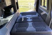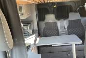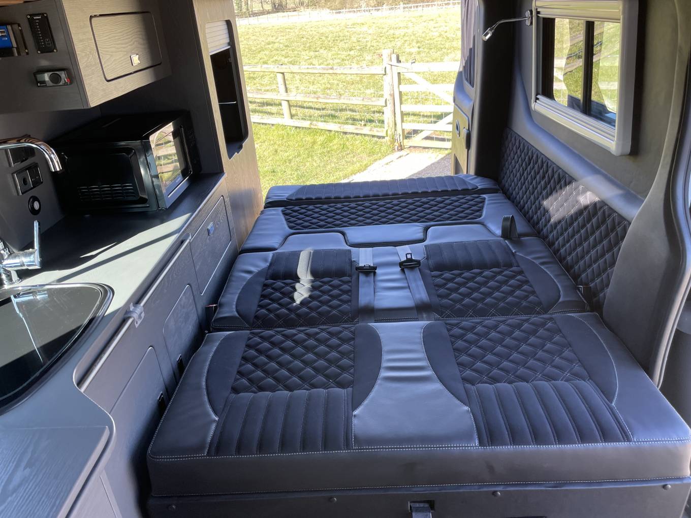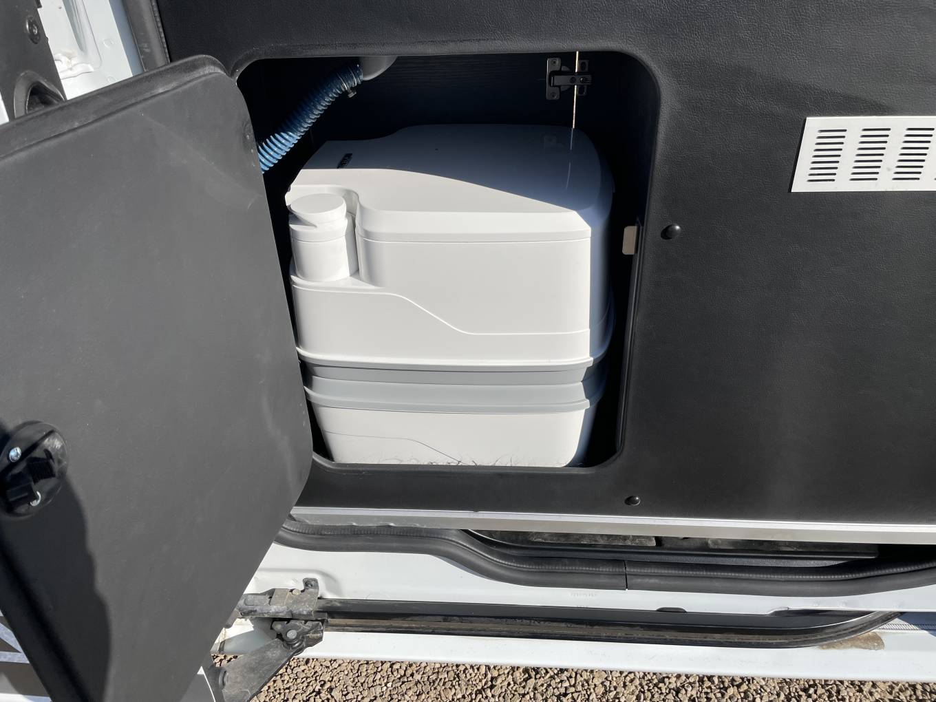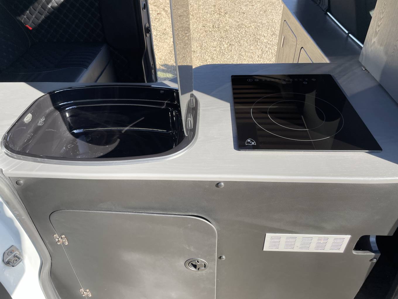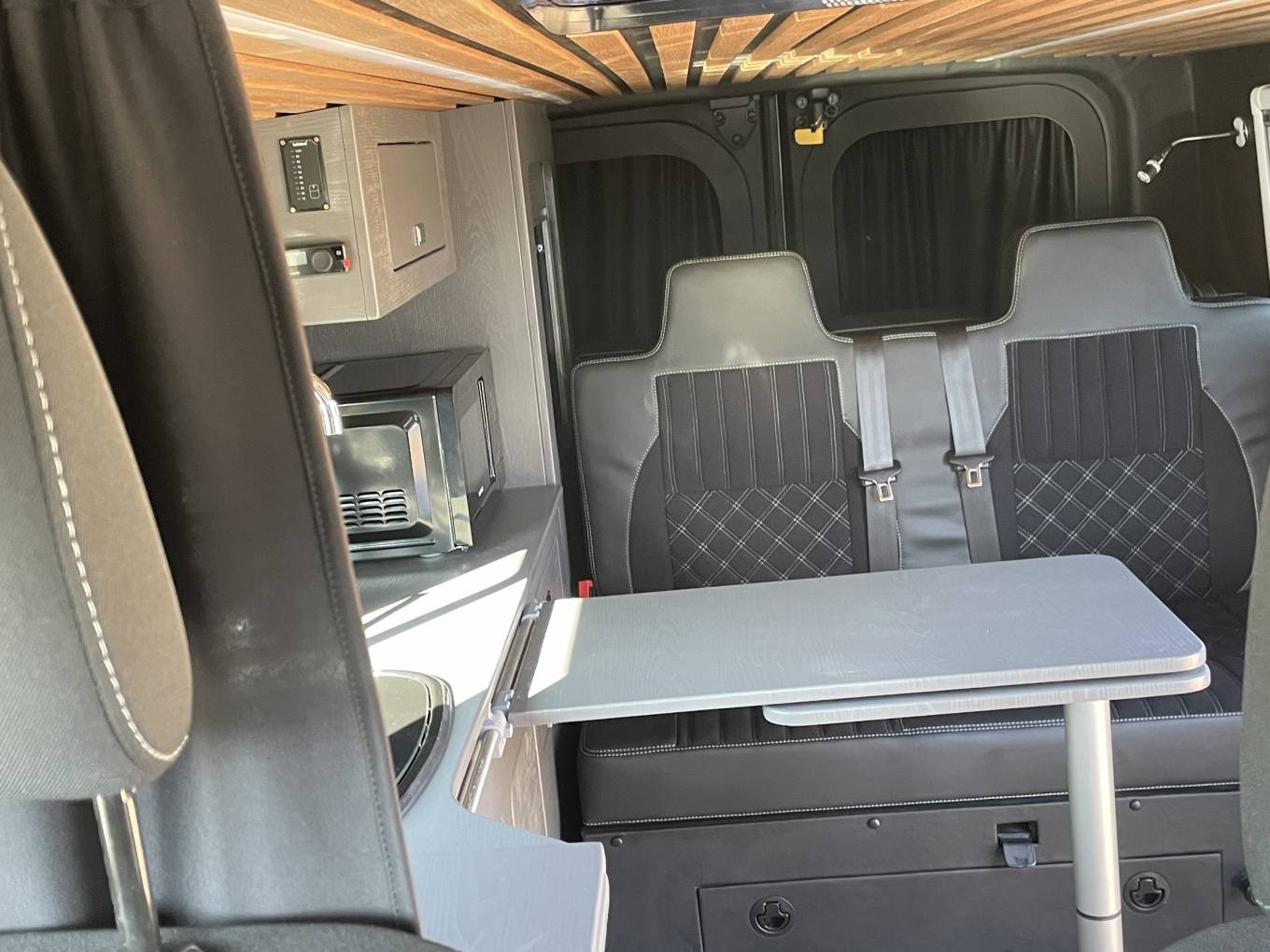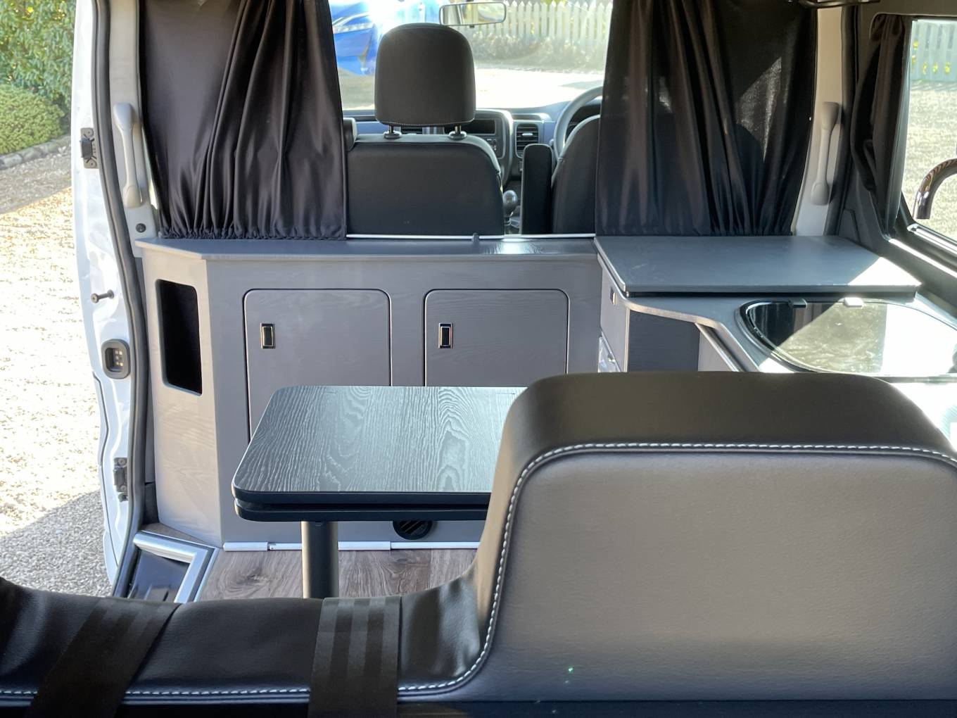 This campervan has a great modern high quality finish and is equipped with everything you would want whether you are getting away on camping holidays, going on trips and adventures or living festivle life, but it is still useable around town with Euro VI emissions and only 5m in length. The addition of a second side sliding door opens this van up giving even more flexibility to use. Fully loaded with cab air con and a separate diesel heater this camper also has sink, hob fridge/freezer, microwave along with an on board toilet. One of the key features of this camper is that the habitation area is not run on gas, just on electric allowing for an on board water tank instead. To make the most of the outdoor life there is a wind out awning and external gas bbq point next to one of the 230v sockets. With a generous rock and roll bed this is a top quality camper van already to get away and use.