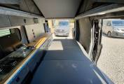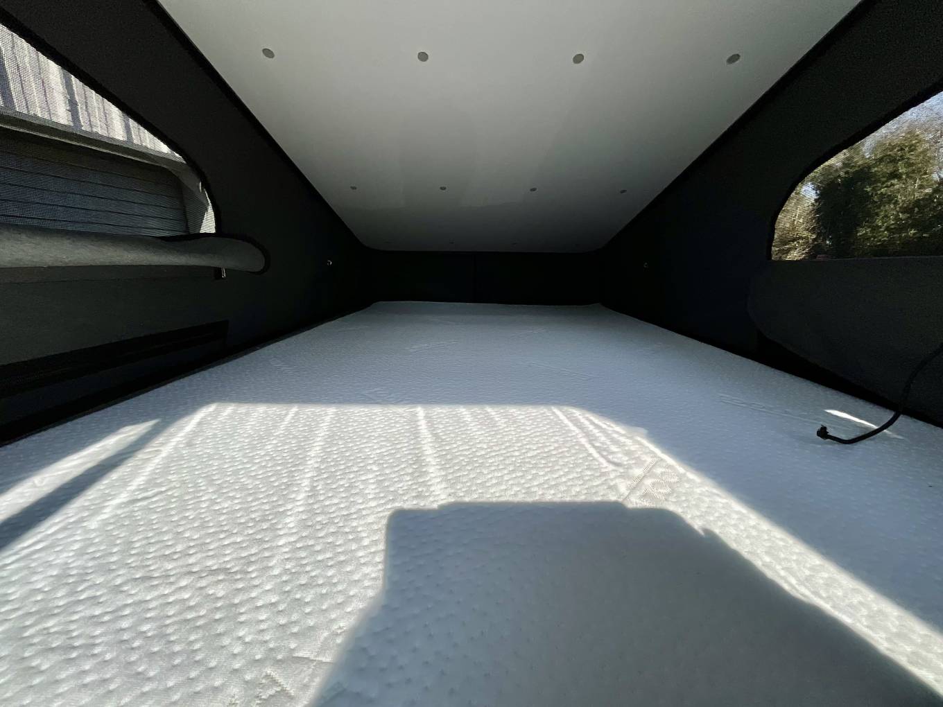 At night, the bench seat can be quickly made up into a large double bed, with plenty of storage underneath. The Austop pop top features a comfortable area to sleep for two, making this a four berth campervan.