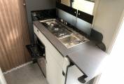 Its the rear fixed bed layout over a large spacious garage, it has the option to make a single bunk from the lounge area, but it's really a spacious 2 berth with the added bed for one or perhaps two small children for short stays.