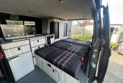 Included is a large inflatable 3-sided tent that slides on to an external roof rail to secure it to the van. Twice the space !!!
