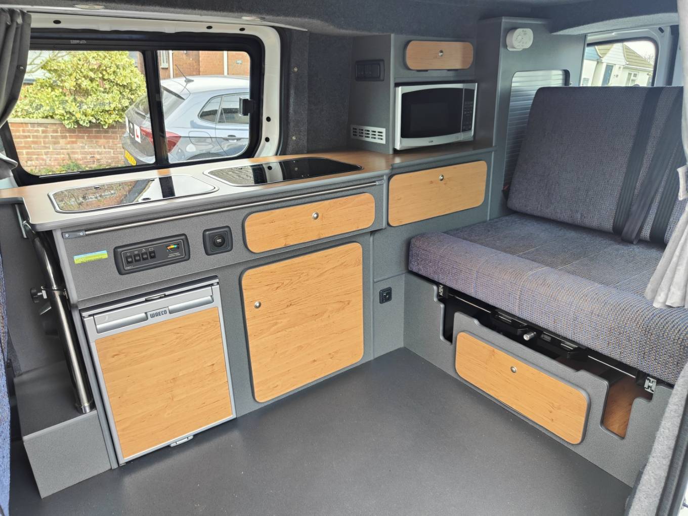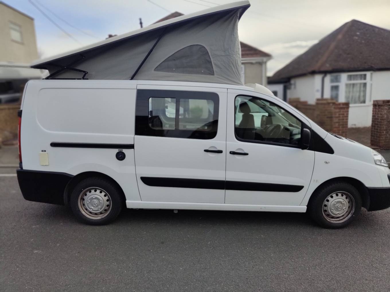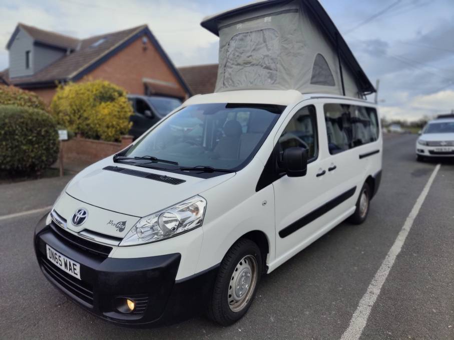 This lovely little P&P conversion on a Toyota Proace is a 2+2 sleeping arrangement with a double in the roof and a rock n roll double down below. This elevating roof camper is in outstanding condition and has covered only 20k miles from new. With a 2 burner hob and sink, mains electric, microwave oven, reverse camera, towbar cab aircon and an inflatable Vango Faros inflatable awning. This smallish camper is ideal for those that want the flexibility of van life and also want to use as an everyday vehicle. When the 2 cab seats are rotated there is seating for 4 and includes 2x tables. Outstanding condition. Based in Kent and more pictures available.