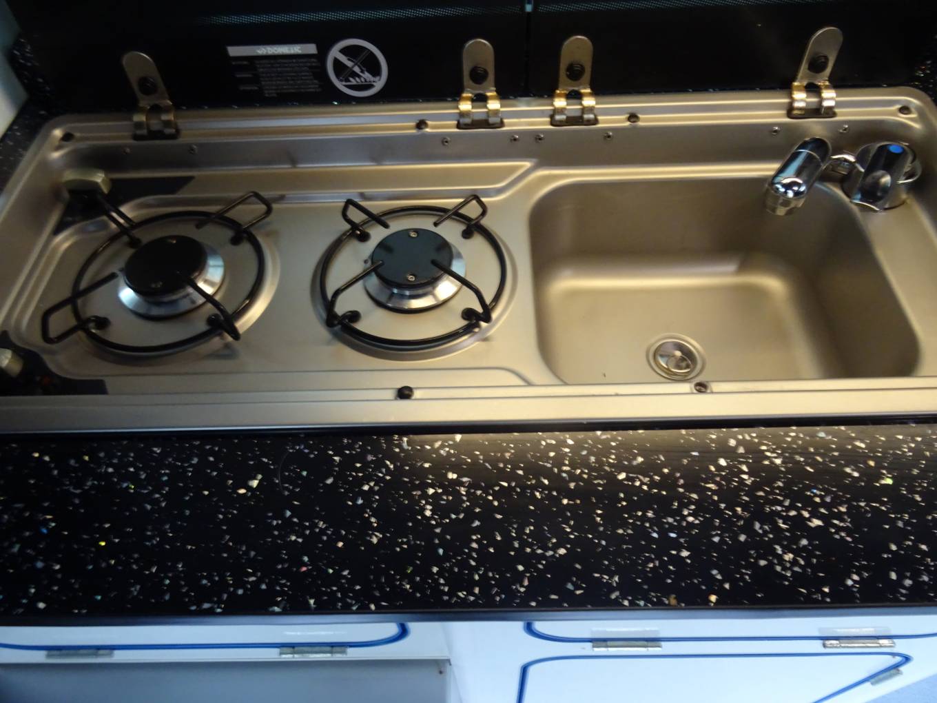 FEATURES: New build - 100w Solar Panel - Good all round storage with under seat drawers and space for taller items at the rear - 2 Gas Burner Hob - Sink and Tap - 12v Fridge with Freezer Box - Strip and Spot Lighting - Rear USB Points - Pop Top Sleeps 2 - Side Slide Window - Rear Tinted Windows and Blackout Curtains.