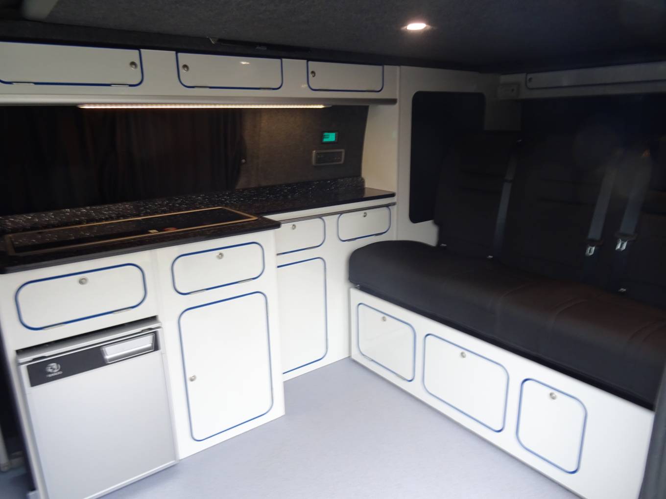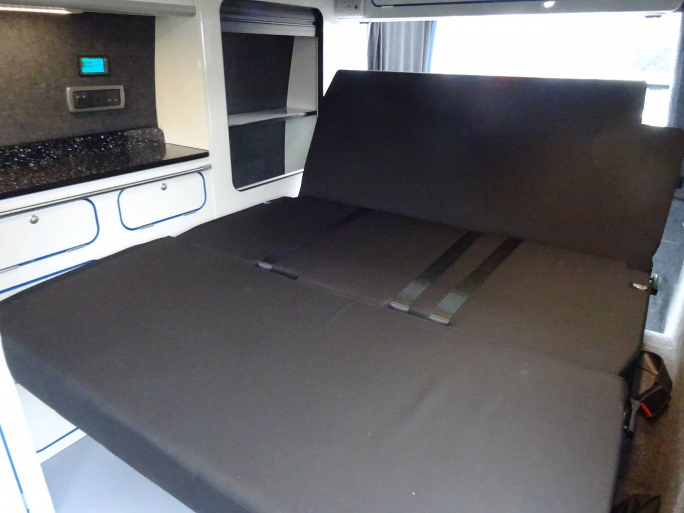 Very high quality 2024 build (CCS Conversion). This Camper van has a bonus of being fitted out with top tether 3 belted Iso fix rear seating. The Rib bed flattens out to 6ft x 4ft 2" and has RECLINE SETTINGS AT BOTH ENDS. The double passenger seat swivels and being on the long wheel base there is a lot of space and comfort, this also applies when the bed is set up and the considerable extra space should appeal to dog owners.