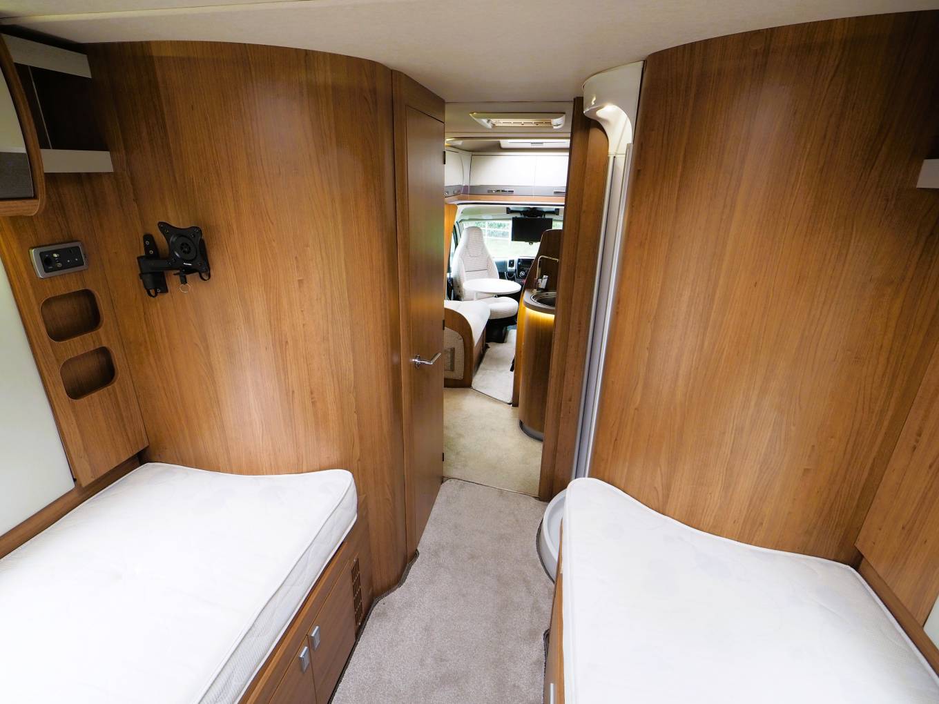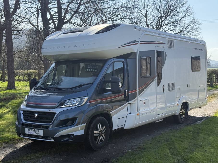 Motorhome Depot Wrexham & Gwynedd are delighted to offer this premium 4 Berth, 4 belt motorhome from Auto-Trail. Based on the Fiat Ducato with 2287cc Multi-Jet engine delivering 180bhp through a 6 speed Automatic transmission and has a low mileage having only covered 28k miles from new. The Frontier Delaware S with fixed rear single beds that have an adjustable chaise-longe feature and can also be configured as a large double bed. Fully featured kitchen and washroom facilities and a comfortable front lounge that swiftly converts to provide a 2nd double bed.