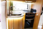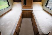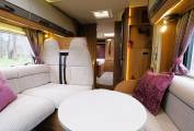 The Delaware is fitted with a twin bottle Gas-Low refillable system, twin 12v leisure batteries with roof mounted solar panel and has 230v electric hook-up. Heating and Hot water supplied via the inbuilt Truma Boiler with control panel. A large rear garage with access from both sides compliments the vast interior storage from the overhead locker and cupboards and drawers including a hanging wardrobe. A drop down Avtex TV/DVD with roof mounted satellite dish is fitted to the front lounge and there is a secondary TV point in the bedroom. Externally there is a gas BBQ point and shower for rinsing off the dogs, walking boots or bikes. An alarm is fitted which also cover the external locker doors.