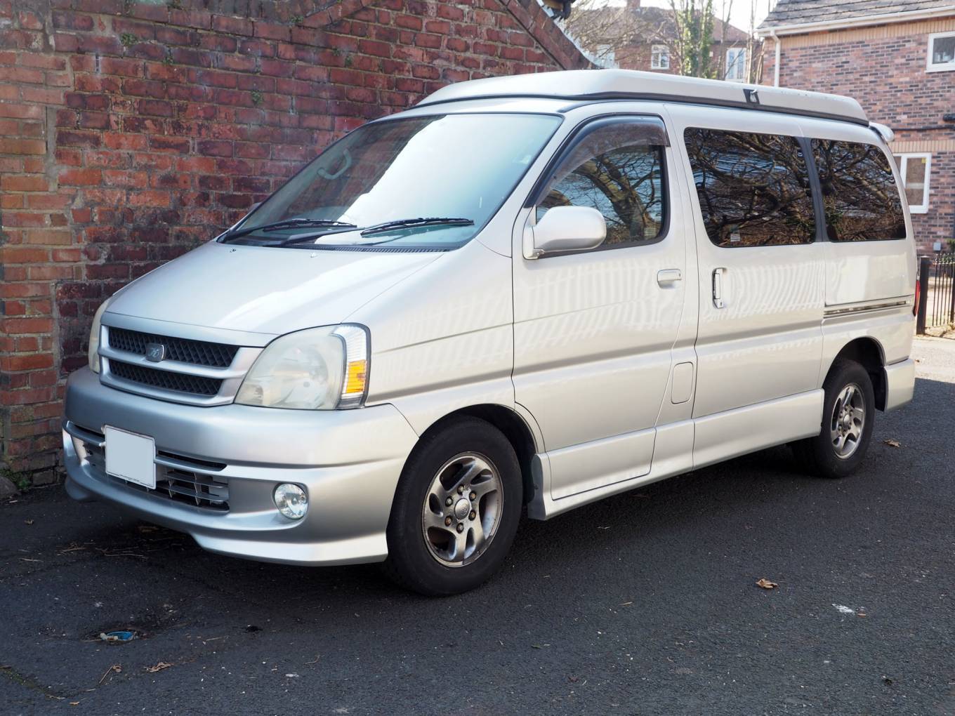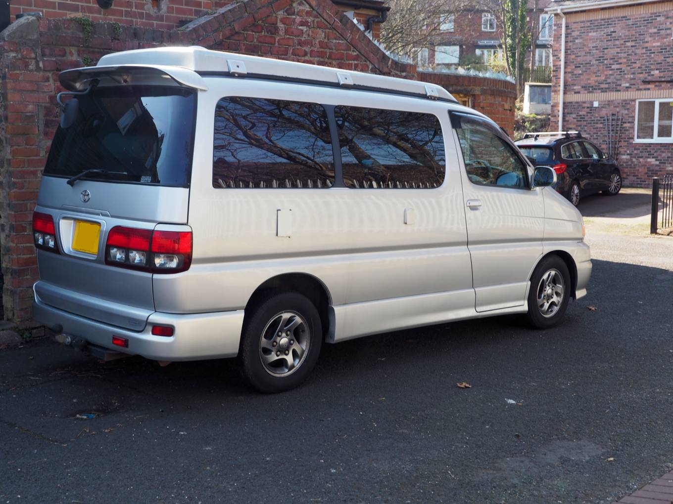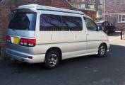 AUTOMATIC 2.7 litre petrol engined Toyota Regius with a nice quality conversion, offering side hinged apex pop roof with bed base, rock and roll bed below, side kitchen, gas hob, fridge, cold water system, full electrics.