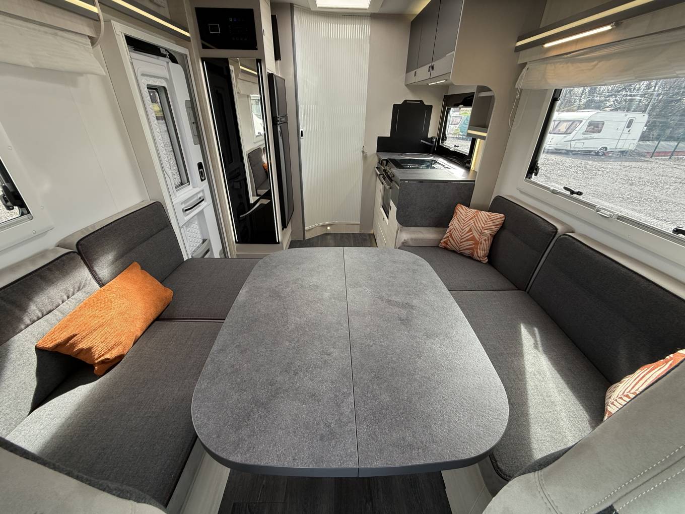 The highlights of this motorhome is the spacious rear garage below an en-suite full width of motorhome bathroom with the large garage ideal for electric or road bikes or storage for all holiday accessories and the spacious modern luxurious and light lounge habitation area with its length under 7 metres.