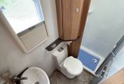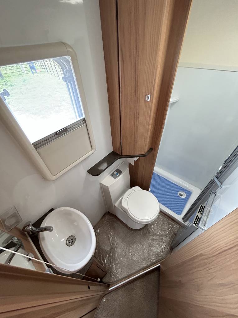 Sleeping in the 745 is extremely convenient and comfortable with a lovely rear fixed bed and a further double that can be made out of the front lounge sofas. There is loads of storage space throughout the motorhome and the rear bed even lifts up for further space. At the rear of the motorhome there is also a good sized washroom with toilet, sink and most importantly a separate shower. The heating and hotwater is provided by the excellent Alde heating system.
