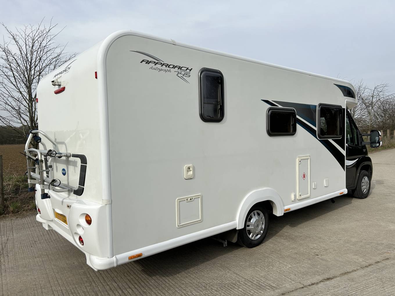 We are proud to introduce this wonderful Bailey Approach Autograph 745 for sale. This motorhome is presented in excellent condition and is completely ready to go. The 745 is one of the most popular motorhomes on the market giving you a 4 berth motorhome with a spacious front lounge, extremely well equipped kitchen, fixed rear French bed, washroom with separate shower. The motorhome has just been machine polished, had a recent service and habitation check and had a new Solar Panel added. At 3500kg it can be driven on a standard driving licence and with 4 belts, it is the ideal motorhome for a couple who want the option to take grandchildren or guests on the occasional trip.