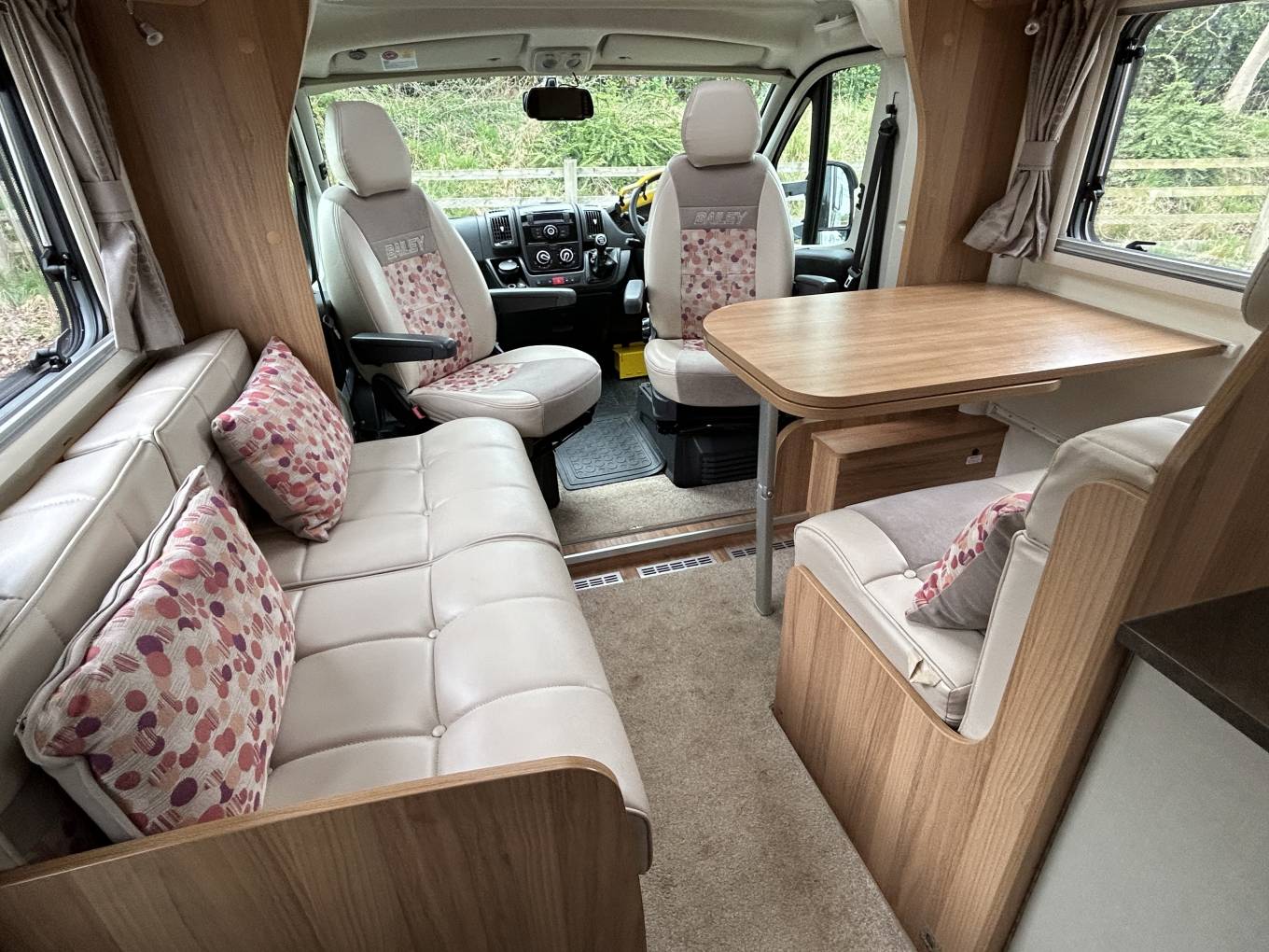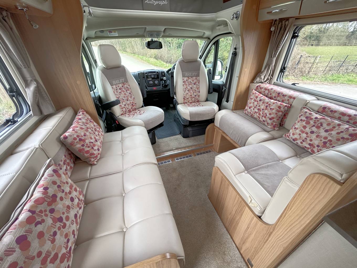 The 745 is built on the ever popular Peugeot boxer chassis and has a 2.2 litre engine with 130 bhp and 6 speed manual gear box. The motorhome has been regularly serviced and is chain driven so no need to worry about the cambelt. The cab has air conditioning, cruise control, reversing camera, radio and full cab privacy blinds.