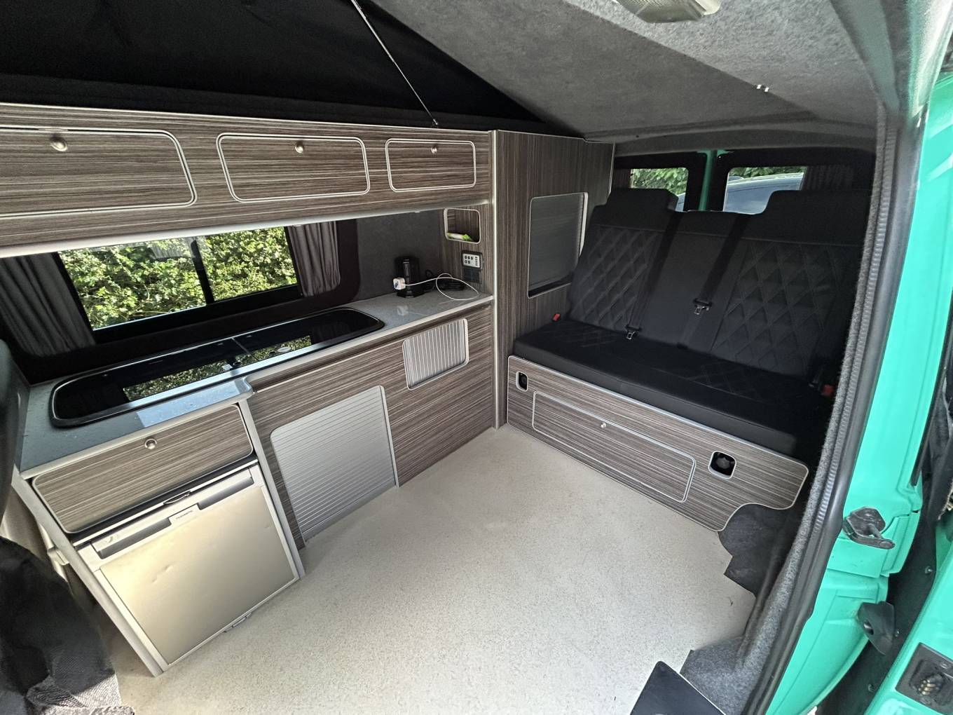 Built on the Volkswagen's T28 Transporter chassis, this campervan is powered by a 2.0L TDI engine, ideal for fuel efficiency and motorway cruising. The pop-top roof adds standing room and an extra sleeping area, while the reversing sensors make parking stress-free. The LED lighting upgrade enhances visibility and modernise its look while the compact size ensures it's as easy to drive as a family car.