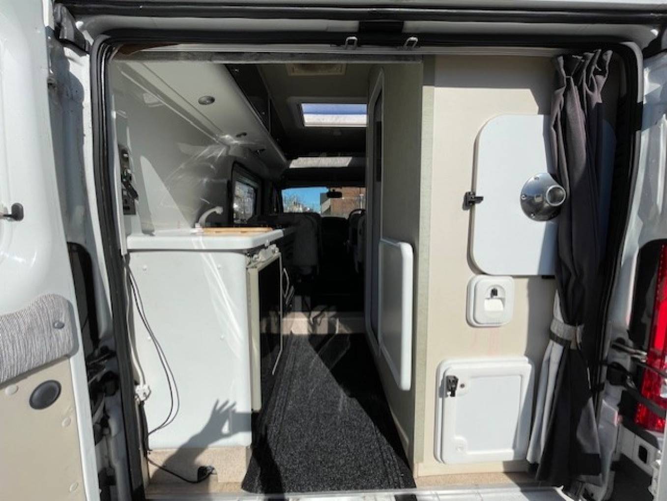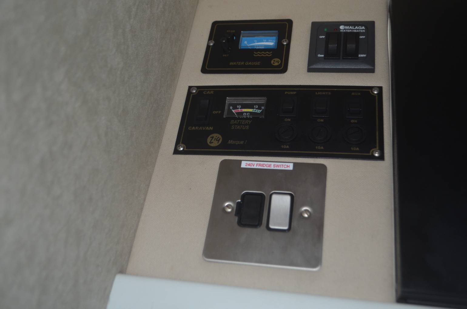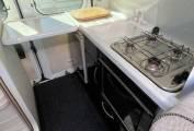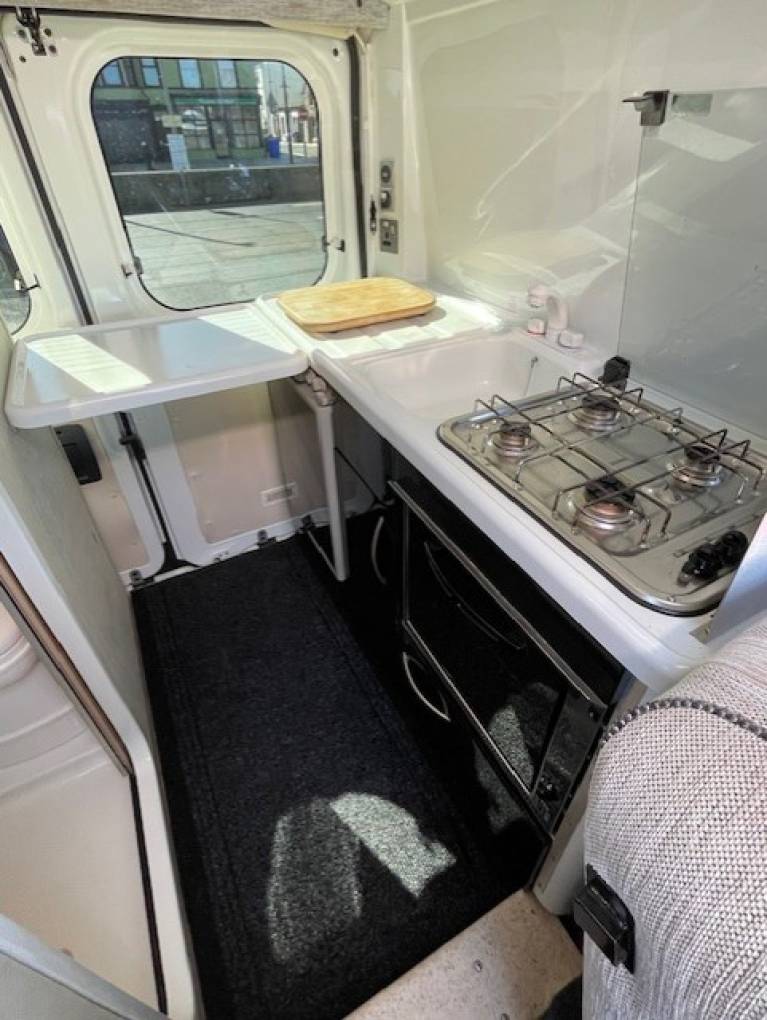 The end kitchen has a 3 burner gas hob, oven, grill, sink and a fold up table for extra work space. Wash room has a cassette toilet, wash hand basin and a shower. Storage lockers and a slide out wardrobe for storing your travel essentials. Additional storage built into the floor.