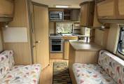 The Bessecarr E530- now part of the Swift Group have a style and finish all of thier own. This is an ideal layout for a Couple wanting a spacious lounge and good sized washroom.