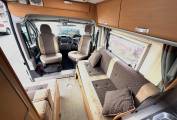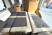The dinette is incredibly spacious and is flooded with light making it a fabulous spot to relax and unwind in. There is a forward facing seat on the passenger side and a side facing sofa along the drivers side. Both the driver and passenger seats swivel to face the rear seats with a dinning table positioned in between. All these seats combine to make the large double bed.