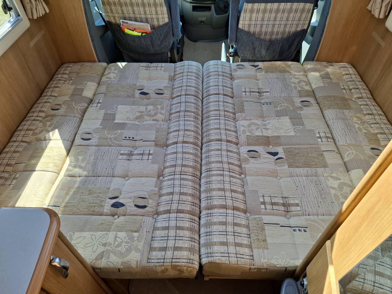 The forward habitation has two, opposing side sofas which create enough space for 4 people to dine or 2 to recline, and that’s before you add in the swivel cab seats. The side sofas can be readily configured to form a double berth.