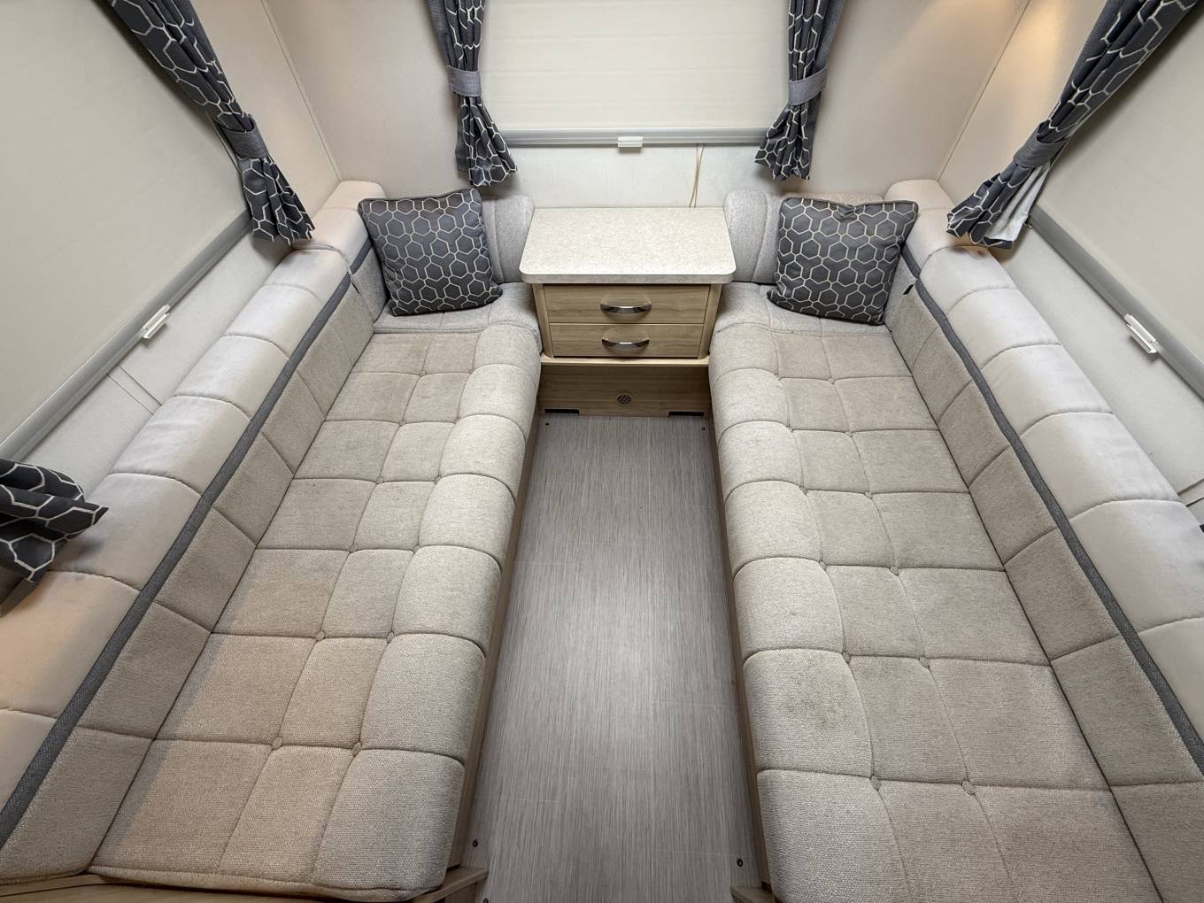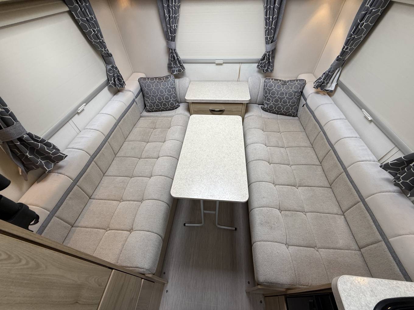 A Foldaway Dining Table sits here for meal times and the area converts to 6ft 8in X 4ft 9in Double Bed OR 2 x 6ft 1in x 2ft 4in Single Beds.