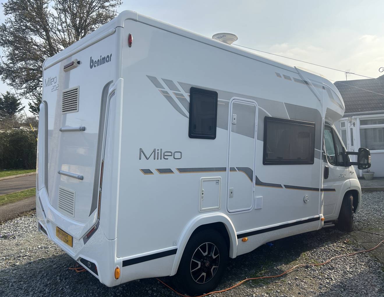 The Benimar Mileo 202 is a fantastic 4 berth compact motorhome that makes the most of the 6m available. It is perfect motorhome to keep at home and fits on most standard driveways. This internal layout is fantastic with the electric drop down bed allowing you to have a spacious front lounge, extremely well equipped kitchen, 2 double beds and generous washroom with shower. The motorhome has a good service history and habitation history, is 3500kg so call be driven on a standard driving licence as is Euro 6 so ULEZ compliant. It is the ideal motorhome for anyone looking to travel around the UK or even over to Europe.