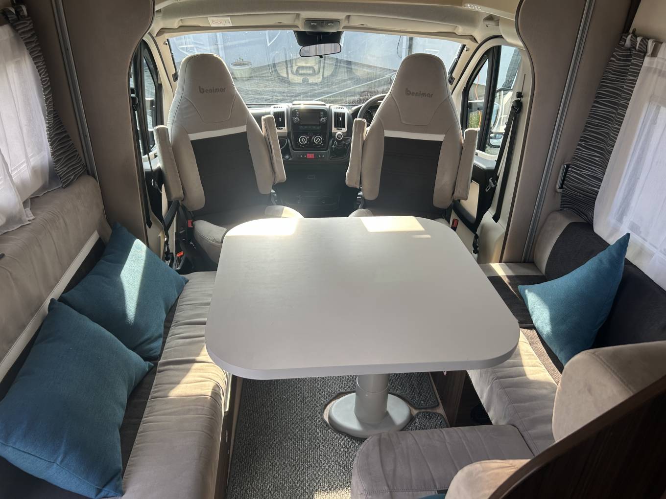 This motorhome is built on the Fiat Ducato chassis and has a 2.3 litre engine with 6 speed manual gear box and 150 bhp, making it economical to drive with plenty of power to get you around. It comes with cab air conditioning, cruise control and reversing camera. As a Euro 6 engine it will be ULEZ compliant and allow you to visit most cities in the UK and Europe.
