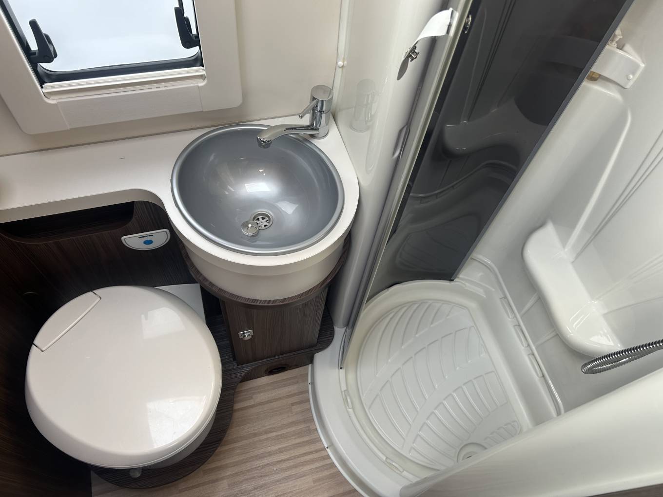 The Mileo 202 is extremely comfortable to sleep in and has two double beds. The first is an electric drop down bed that can come right down - giving you easy access. If you want to use both beds then the lower sofas make up a good sized second double. At the rear of the motorhome you have a lovely washroom that features a Thetford Fush cassette Toilet, sink and Shower with screen. Heating and hot water are provided by the excellent and simple to use Truma I-net system. This motorhome has a surprising amount of storage for a motorhome of this size with a number of cupboards and wardrobes.