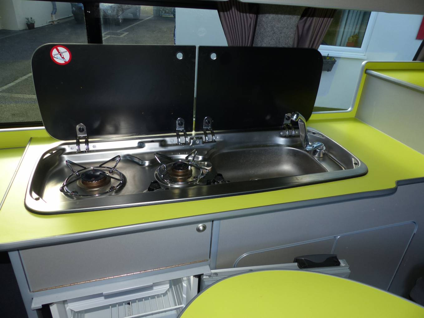 There is a gas hob with a sink and drainer next door.. There is a compressor fridge under the counter and night heater powered by gas. There is a solar panel to the roof to keep the leisure battery topped up and with ample storage and lighting, the van is perfect for that quick get away but equally at home being used as a day vehicle.