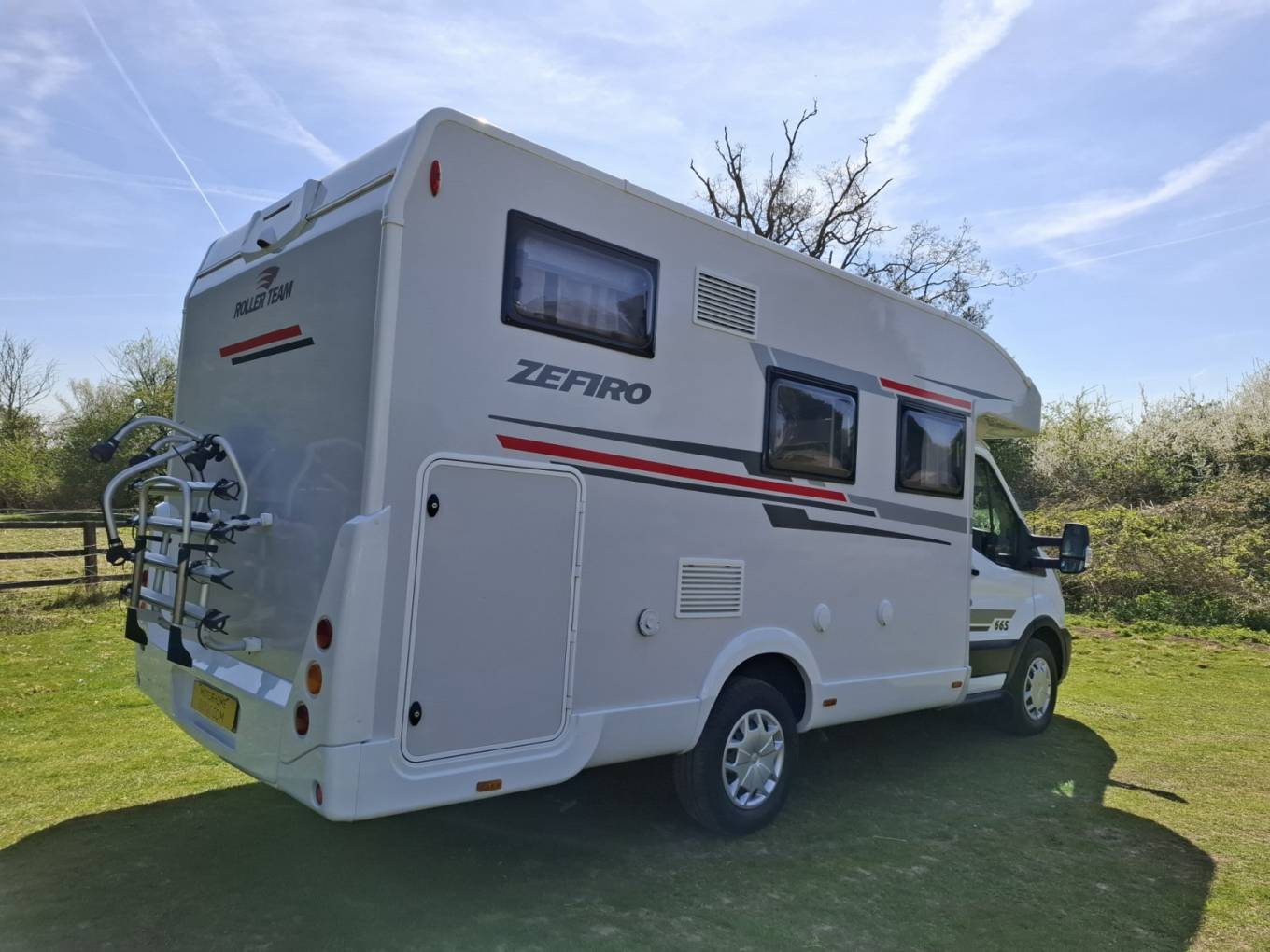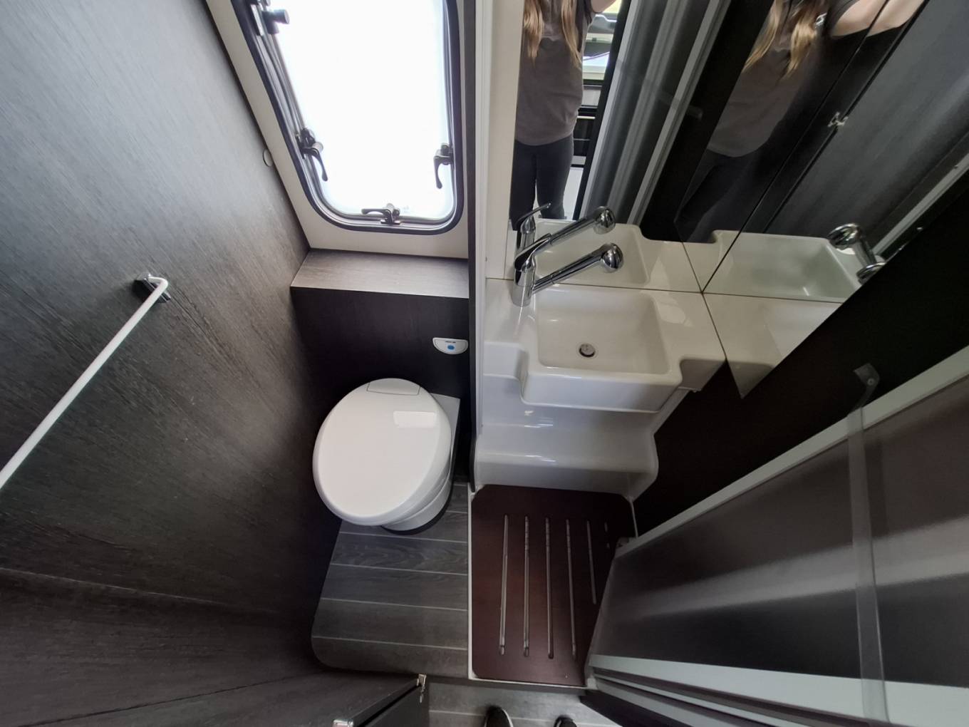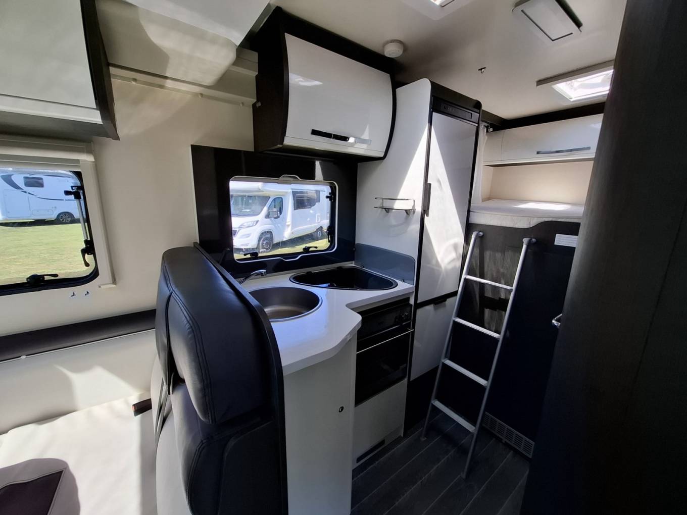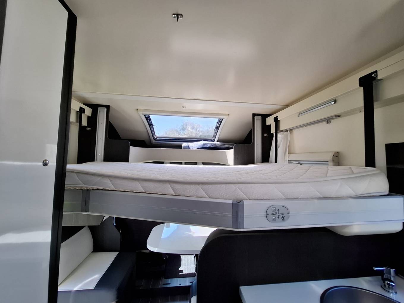 At the rear of the vehicle is a raised transverse double berth, located above the large garage which can be externally and internally accessed.