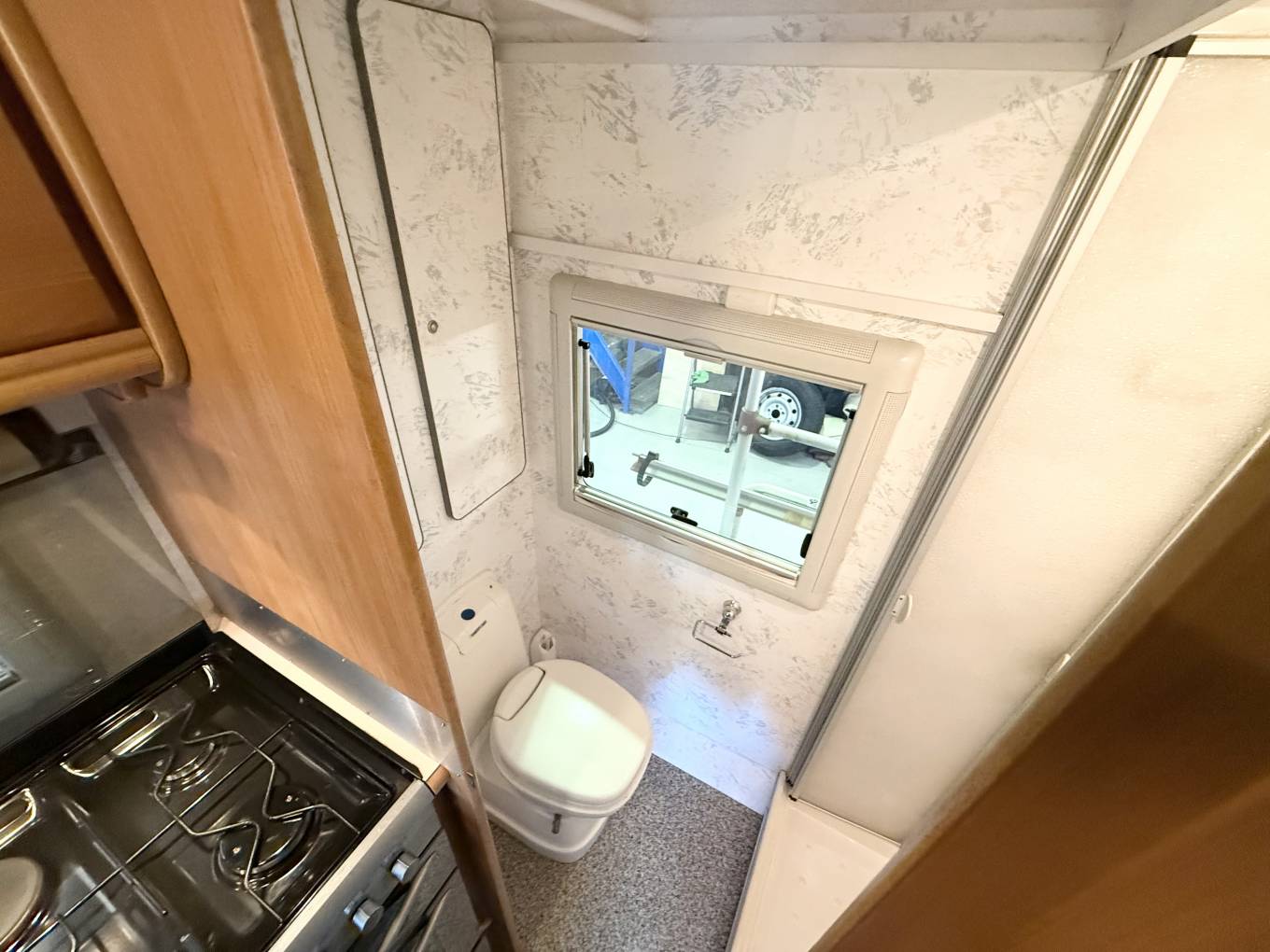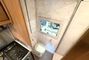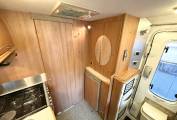 The washroom itself occupies the whole of the rear of the motorhome with cassette and sink. The shower is separate from the rest of the washroom and is closed to the washroom with a folding door. It has it's own lights, mirror and sink within the area itself and is very roomy.