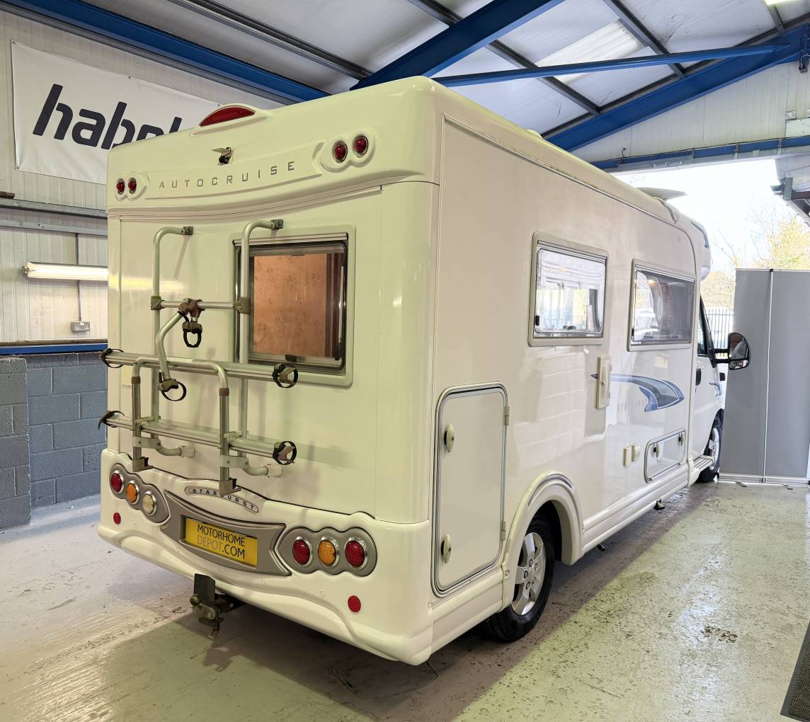 This is an outstanding example of a Autocruise Starburst. This lowline 2 berth coachbuilt motorhome is only 6.2 metres long and weighted at 3500kgs so can be driven by all. With two long bench seats to the front that utilizes the 2 rotating Captains seats, a well equipped center kitchen and a spacious end bathroom with separate shower, this motorhome is aimed a couples that like space and quality. In addition to the good basic spec, Beautifully maintained by the previous owners this 2 berth 2 belt motorhome on a Peugeot 2.2 litre manual has a rear washroom including separate shower cubicle.