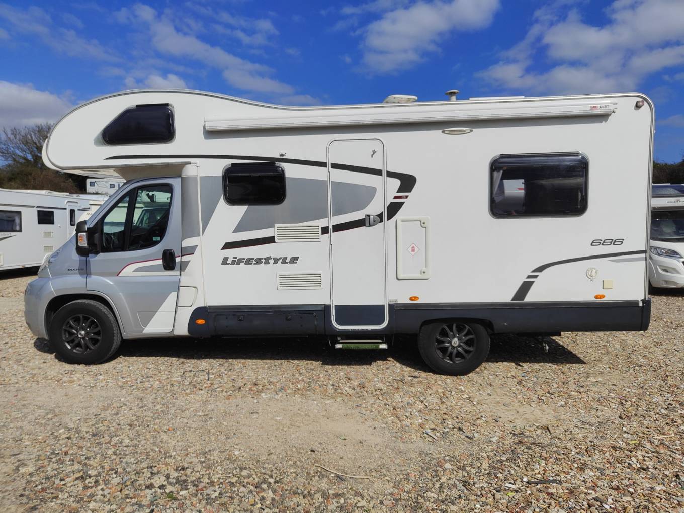 This is a great example of Swifts best selling Escape 686. This 6 berth, 6 seatbelt model is a great layout for the family and being plated at 3500kgs means that any licence can drive. With a spacious U shaped lounge, bed above the cab and a dinette to the front that makes the 3rd double, this versatile van is a popular layout. With a great kitchen and functional bathroom and toilet, this would be suited to a family or couple that like space. This high spec example includes a Fiamma awning, reverse camera, tv, aerial, solar panel and a gaslo refillable x2 gas bottle sysyem. Based on the excellent Fiat Ducato cab with the 6 speed manual gearbox with cruise control and cab aircon. 50k miles from new with great history. MOT until 31st jan 2026. Based in Kent and more pictures available.