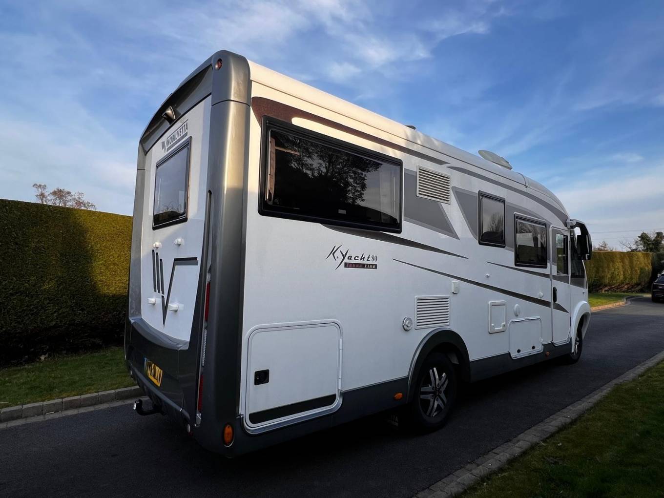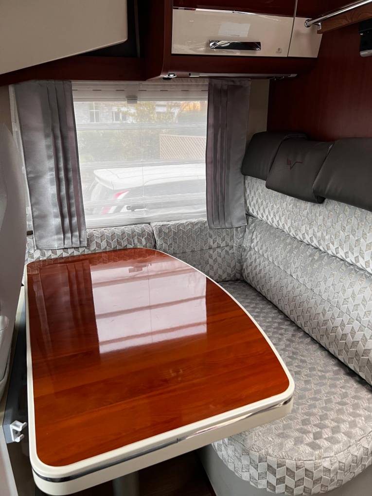 The K-Yacht comes with a high level of standard equipment but this one comes with some very relevant extras - Truma Habitation AC,Protec Full vehicle cover,a bespoke windscreen cover,Tracker security package,additional locker contacts and a TV which is stored in a slide up cabinet. It is estimated that these extras alone cost around £5k.