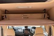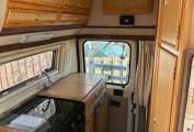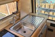 As you enter the Camper van from it's large sliding door you are in the comfortable dining area with two forward facing seats incorporating the other travelling seat belts. When required this area easily converts to a large double bed or if preferred two long single beds. The rear kitchen is well equipped with a full oven, 3 gas hobs, sink, fridge/freezer and ample storage with overhead and low level cupboards. Opposite the kitchen area we have the washroom with shower, toilet and foldaway sink. Other extras include a canopy and bike rack.