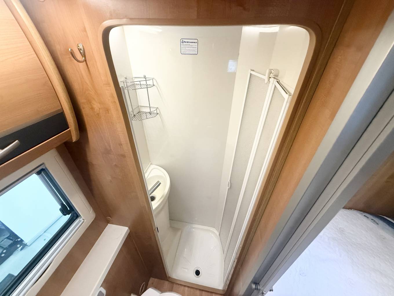 At the rear is the fixed corner bed and washroom with wc, sink and shower next door.